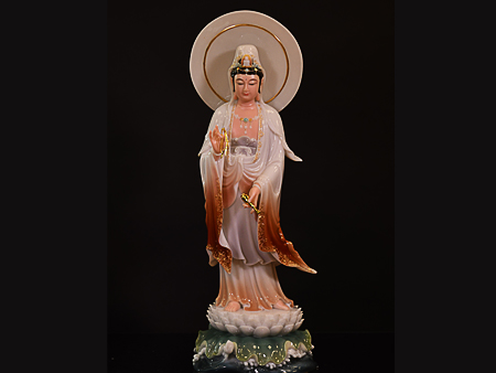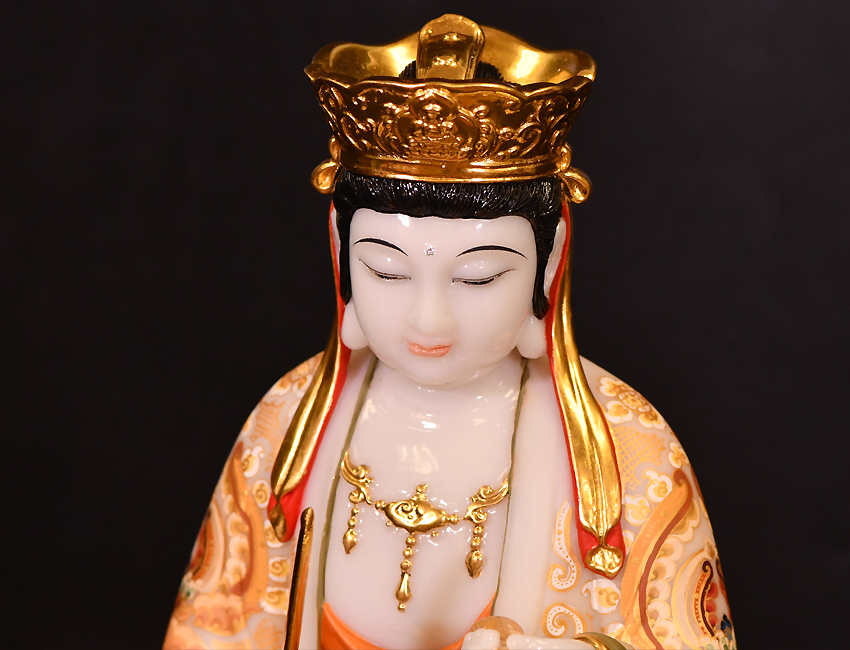 此佛像高度為68CM,工藝制作嚴謹,佛像莊嚴殊勝,細節(jié)精致細膩,色彩鮮艷明亮。