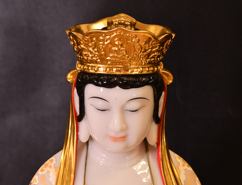 此佛像高度為68CM,工藝制作嚴(yán)謹(jǐn),佛像莊嚴(yán)殊勝,細(xì)節(jié)精致細(xì)膩,色彩鮮艷明亮。