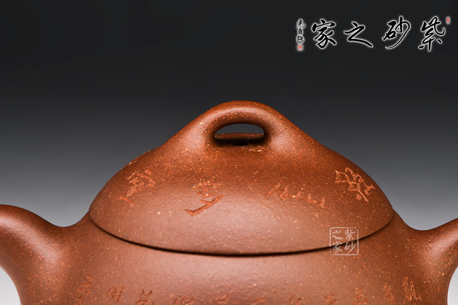 此壺形似秤砣,造型最為簡(jiǎn)潔,無(wú)有腰線、肩線、頸線等其他工藝處理,通體完全靠平而不凹的平底和光潔溫潤(rùn)的塊面,平正的截蓋、流暢的整體線條來(lái)詮釋整個(gè)主題。