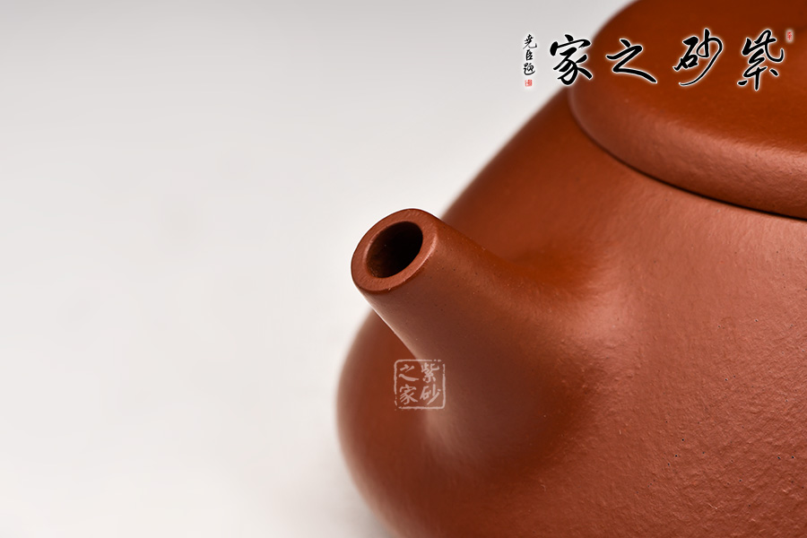 壺身較傳統(tǒng)子冶矮了很多,壺口大,投茶倒茶葉更加方便。壺蓋平緩合體,壺鈕拱橋形設(shè)計潤澤和順,便于拿捏的同時也為壺增添了一股靈動之氣。直流嘴“圓中帶方”暗接于壺身,流暢自然,和壺把完美呼應,實用性極強。最后看到壺底,納瓢壺的來歷,正是因為具有特色的壺底,一捺底,捺通納,諧音。220cc黃金容量,藏用皆宜.