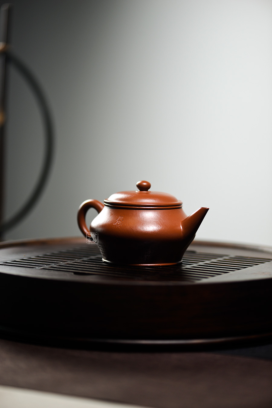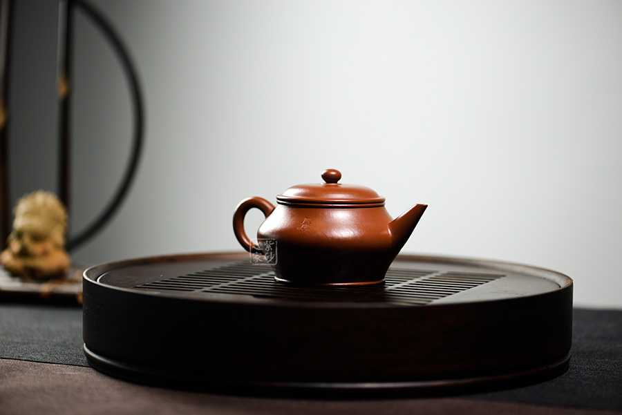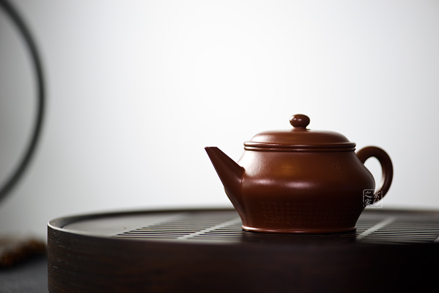 此壺壺身飽滿,壺把細(xì)圓,直流長壺嘴自然胥出,如此簡單造型的壺卻是一代一代經(jīng)典之作。