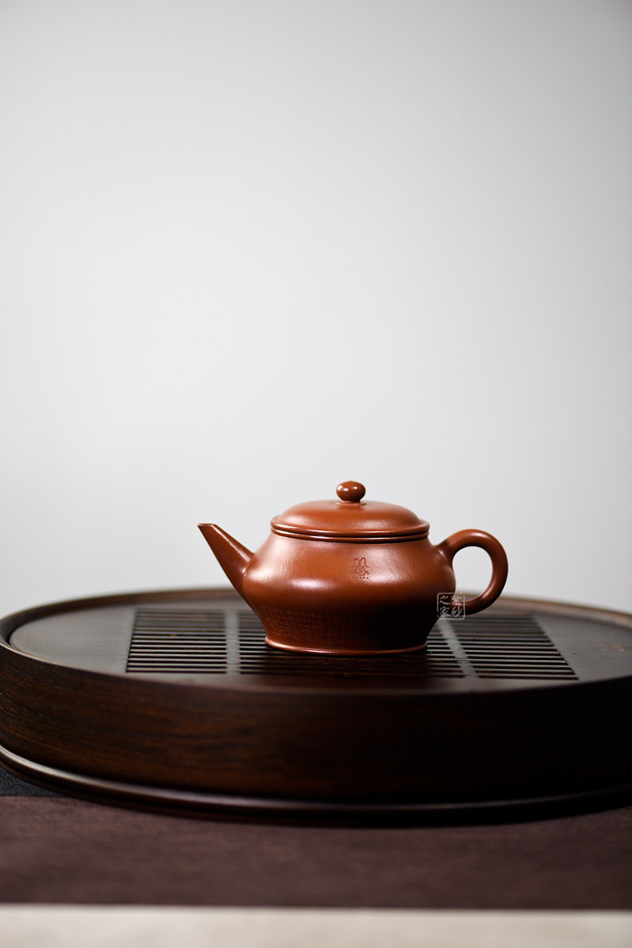 整器圓潤飽滿,壺雖小卻霸氣十足,挺拔于巧麗之中,把玩于股掌之間,竟令人愛不釋手。