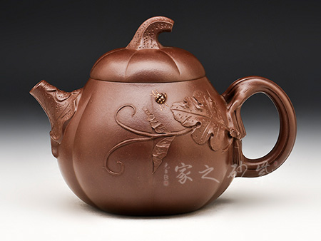 此扁南瓜形壺,具有自然生動(dòng)、敦實(shí)的輪廓,瓜瓤豐滿,生機(jī)盎然。