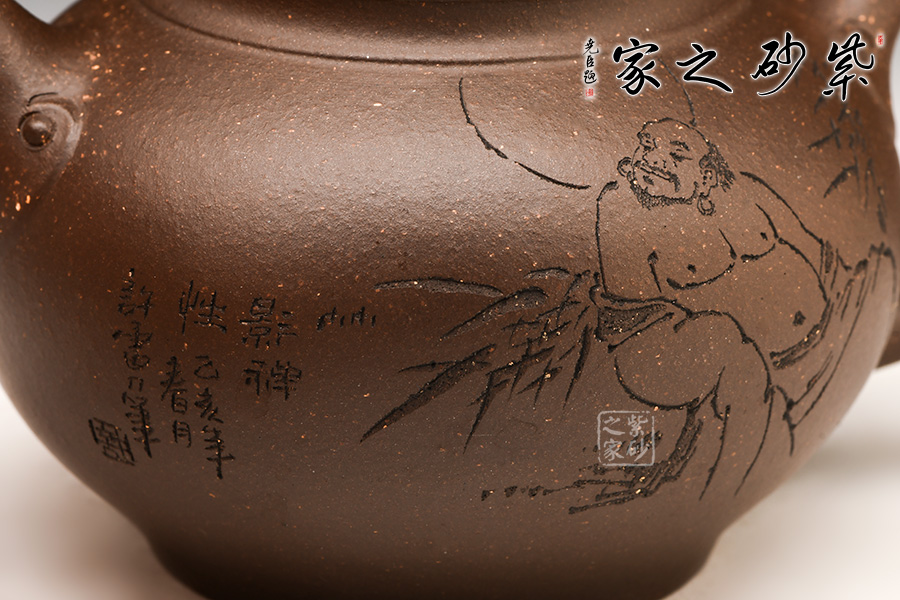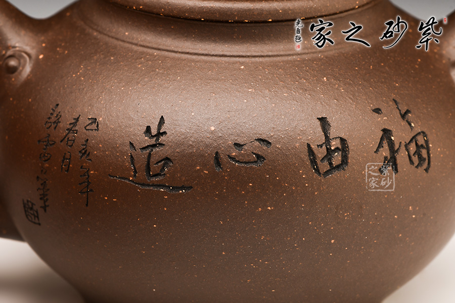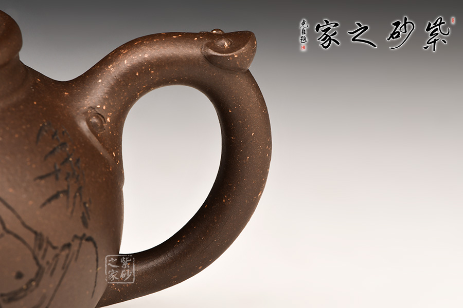 壺身裝飾由著名陶刻藝人許雷操刀篆刻,字體靈秀、古拙、飄逸,極具文人氣息。