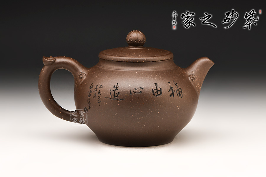 此壺傳統(tǒng)上融入現(xiàn)代創(chuàng)意,加之如意紋裝飾,造型古雅,色澤古樸,修整打磨精細(xì),整體渾厚大氣,于繁忙之余品茗,回味無窮!