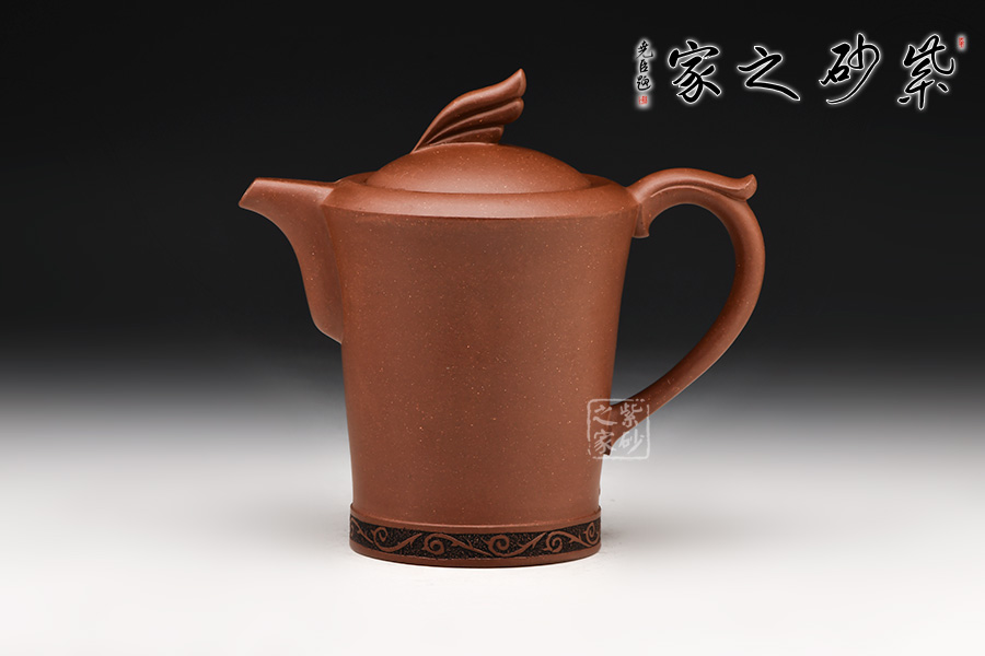 “芳韻”作鳳凰狀壺,以意塑形,寓意吉祥如意。其壺身呈高圓柱狀,厚實(shí)古樸,方敦雅致。壺嘴由方器之形意,形似鳳眼,惟妙惟肖,出水自然爽利。壓蓋密閉線(xiàn)交合緊密,保證了極佳的氣密性。的子造型雅致,作鳳羽狀,氣韻獨(dú)特,拿捏手感極佳。飛把為鳳尾,寓意上好又適于把執(zhí),待人細(xì)細(xì)品味。