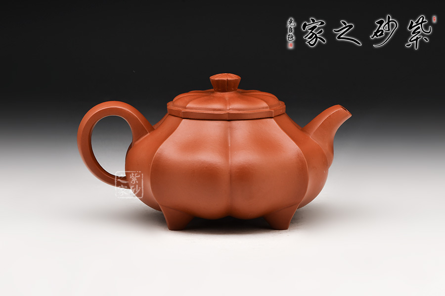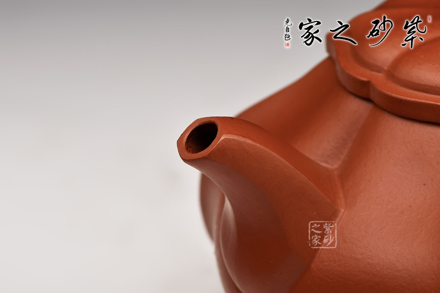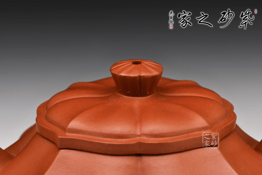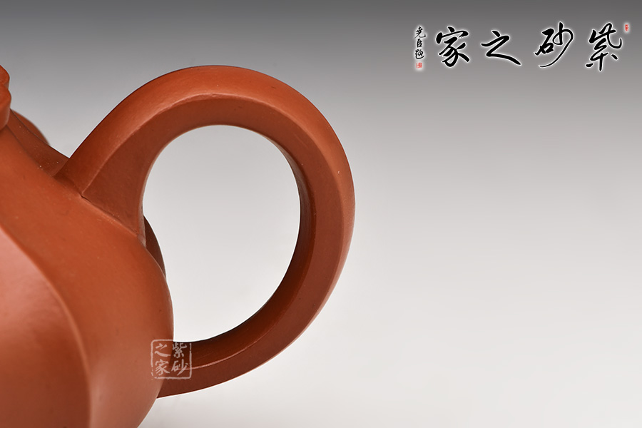 采用原礦底槽青制作,泥質(zhì)細(xì)膩、成色穩(wěn)重。壺身略扁,四面鼓腹圓融,棱線采用抽角形式,向內(nèi)凹陷,向外凸出,筋紋從壺鈕延伸至壺底,作品整體上大氣,細(xì)節(jié)處精致,工藝非常高超。