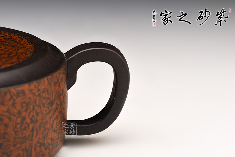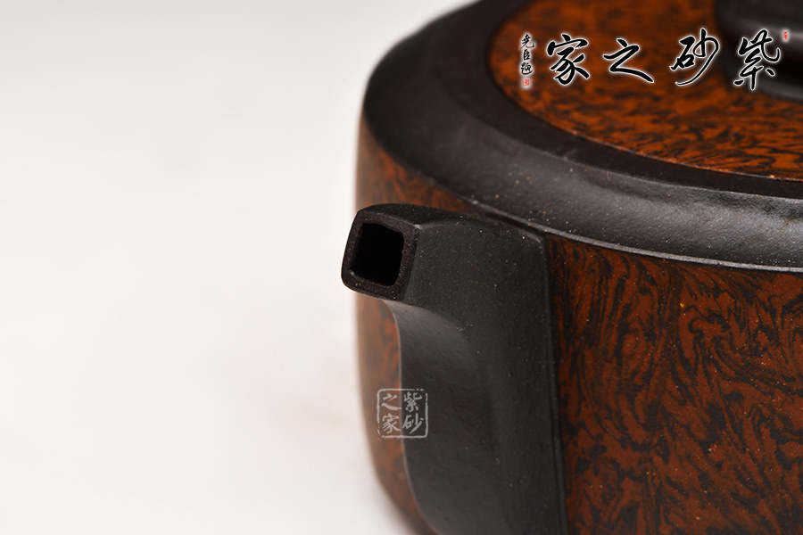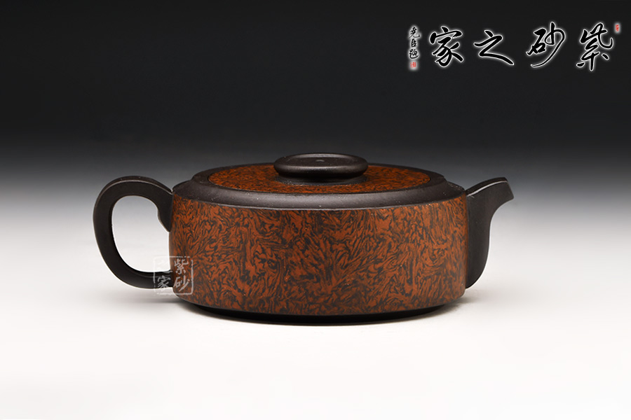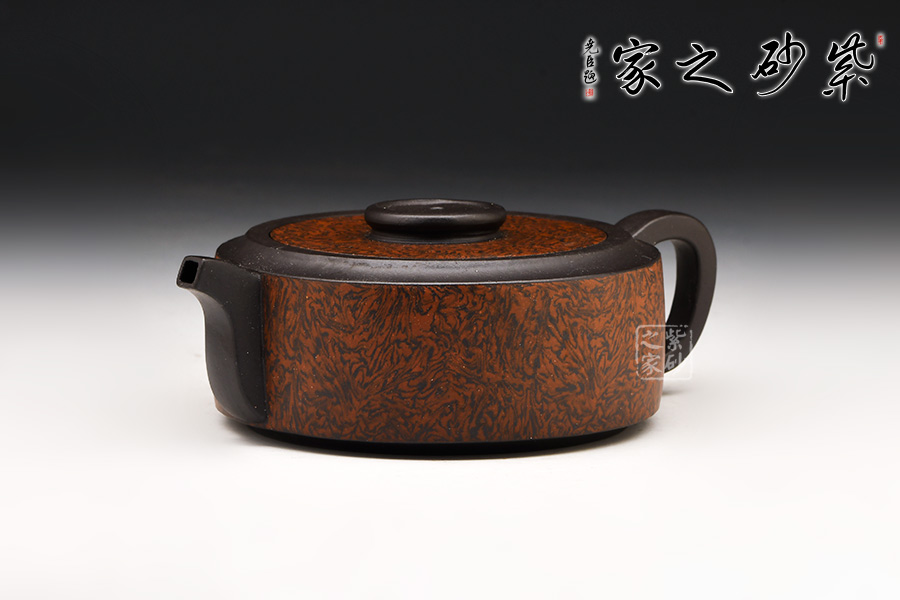 壺身呈扁圓柱狀,流把作四方造型明接于壺身,體現(xiàn)智圓行方的理念,搭配比例協(xié)調(diào),實(shí)用極佳。