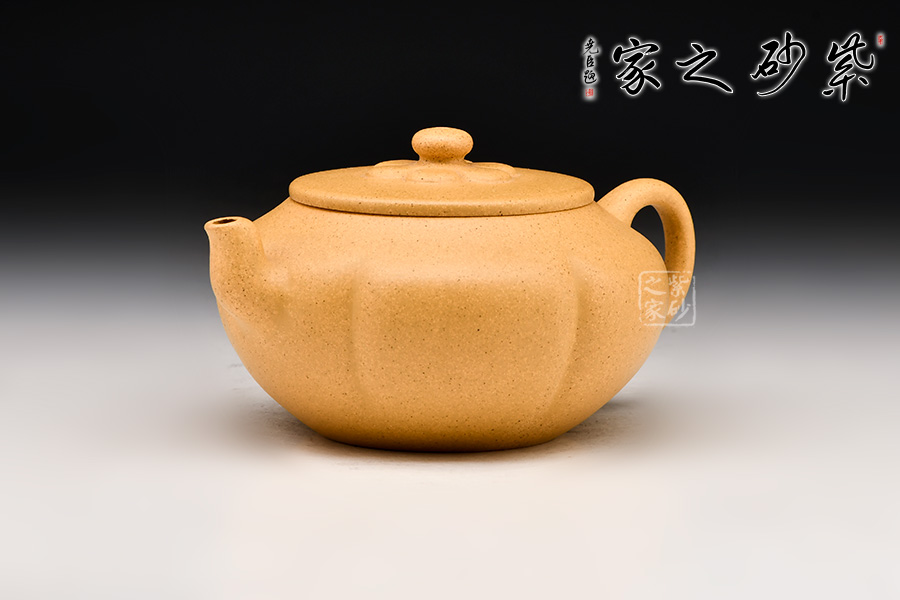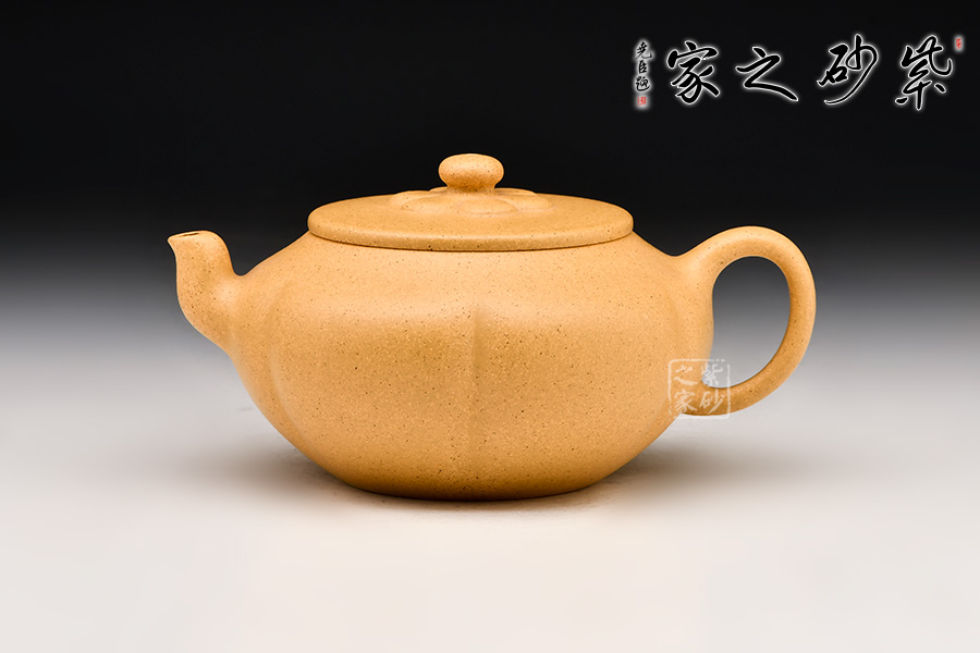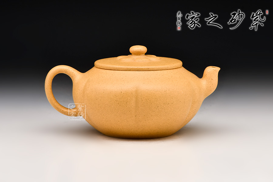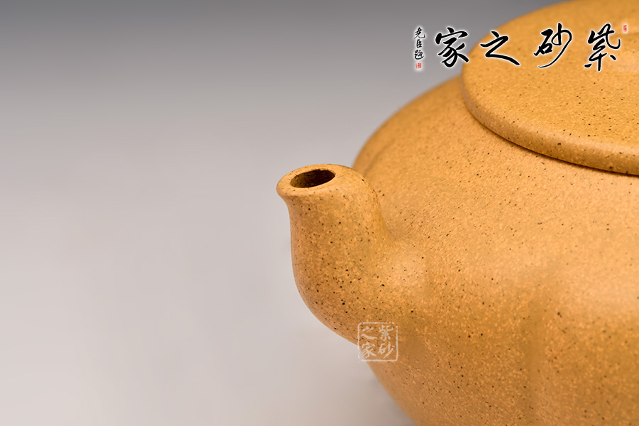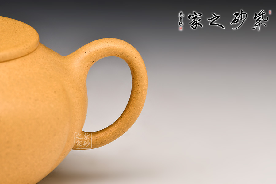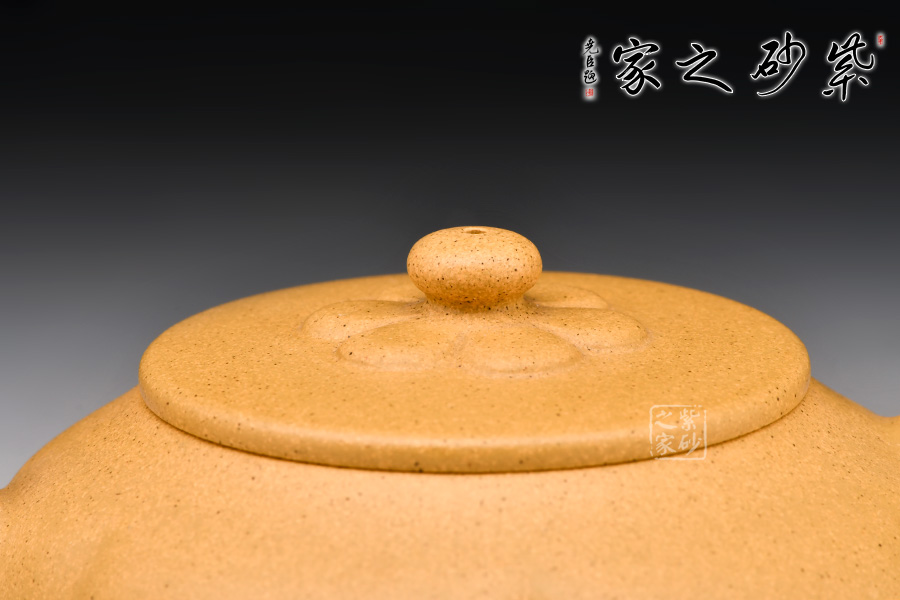 形象飽滿富態(tài),口蓋嚴絲合縫,嘴與把比例和諧。蓋面布局花瓣,與扁珠鈕結(jié)合一體,著力打造光澤亮麗的花朵造型,給人以十分舒暢的視覺效果。