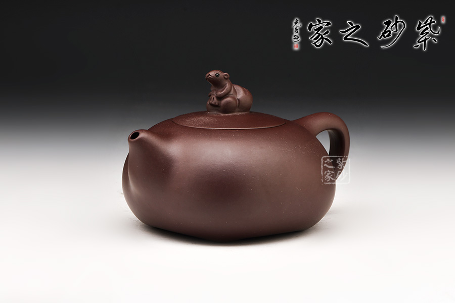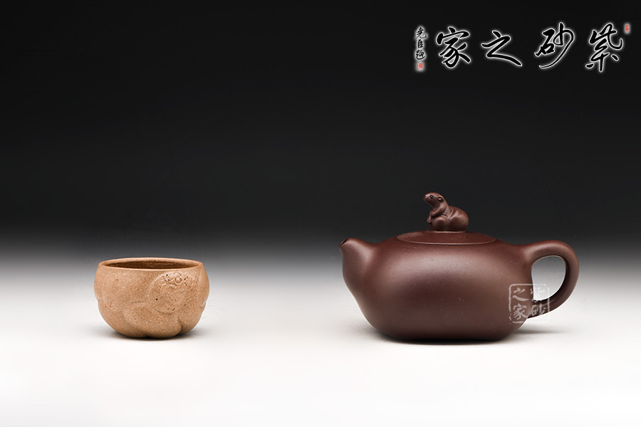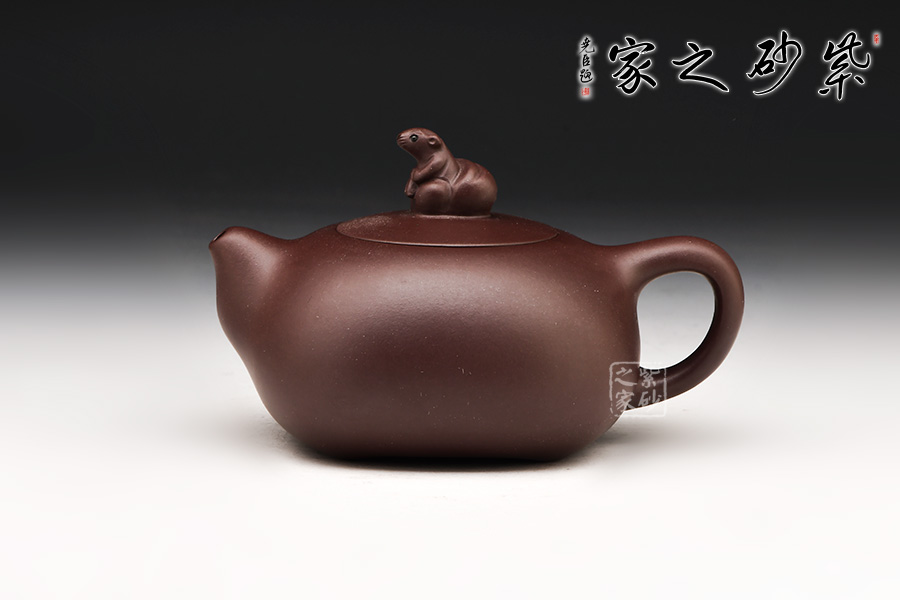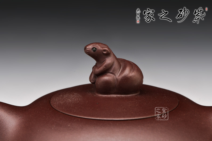 整器素雅,光潤(rùn)古樸,以鼠元素入砂壺,塑“鼠拖糧袋”之造型,精雕細(xì)琢于鈕,栩栩如生,靈動(dòng)可愛。杯身一側(cè)置耳把,彎曲的弧度,亦如細(xì)長(zhǎng)靈巧的鼠尾,與主題相呼應(yīng)。