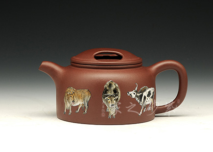 牛蓋蓮子是一款不可超越的經(jīng)典壺型,壺蓋上對(duì)稱有兩個(gè)橢圓形的孔,猶如牛頭上的兩只“眼睛”,生動(dòng)形象,掀蓋沖水,亦十分方便。渾樸秀麗的彎嘴,細(xì)柱把,扁圓身,整器氣勢(shì)雄奇,令人愛不釋手。