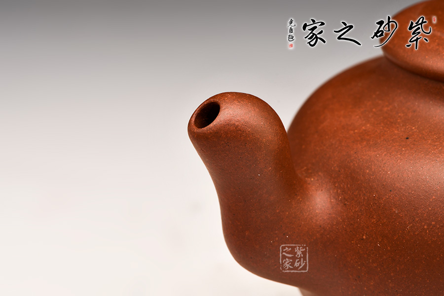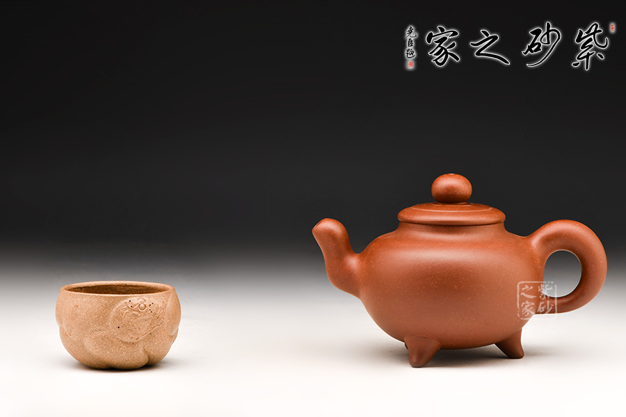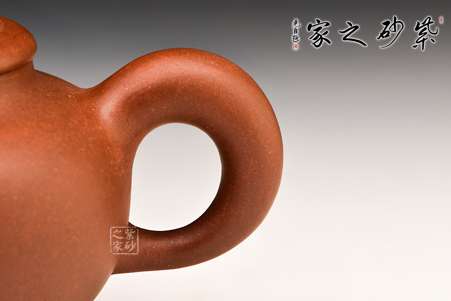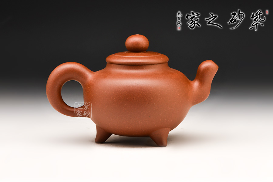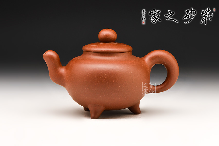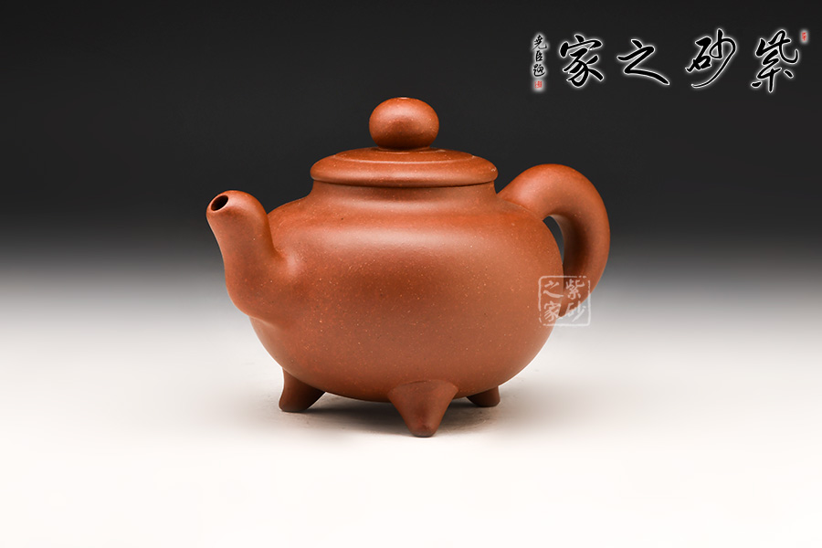 整體壺身為圓形,飽滿挺括,碩大圓壺鈕,簡潔有力。三彎壺流,吉祥雅美。耳形壺把,實(shí)用方便,加之三足作底,散發(fā)出深沉古雅之韻味。