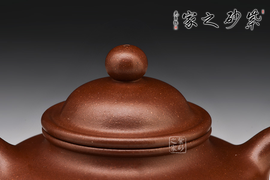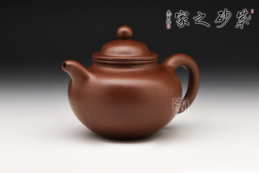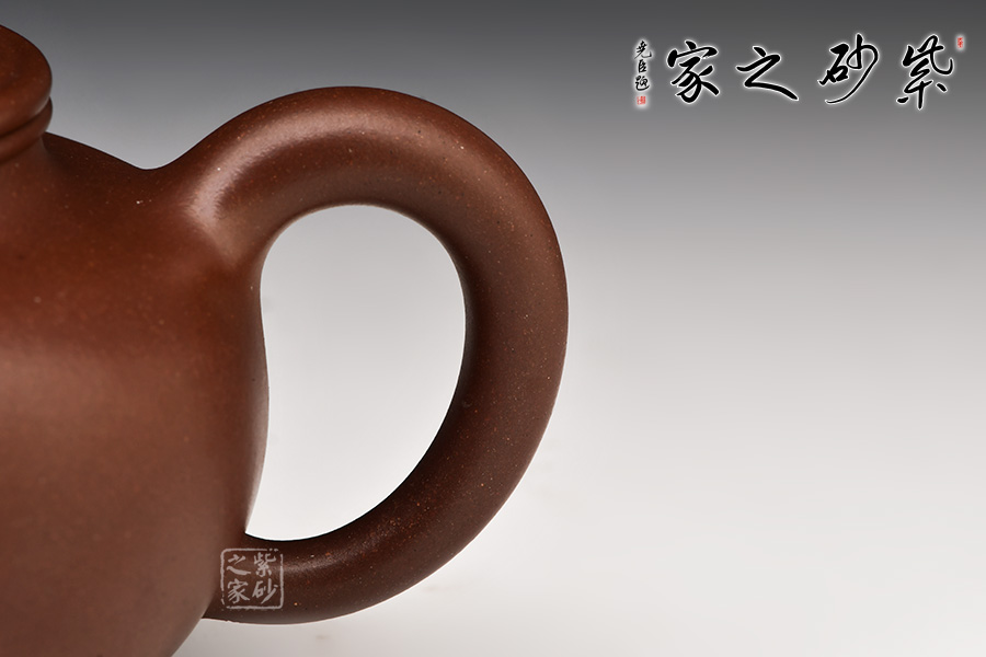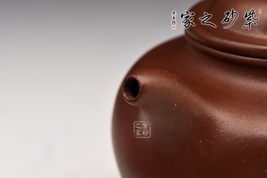 壺身滿圓渾厚,壺嘴短渾前發(fā),壺把飄逸周正,壺口面由渾身至滿肩收勢,配以小拱形球面以做壺蓋,口面蓋沿以子母線貫連壺體,意寓天地之大道,壺鈕以壺身圓球之狀作點睛之筆,卓顯掇球壺之本意述達,肩項及腹,骨肉均勻,氣韻精奇,非言語可以之形容矣。