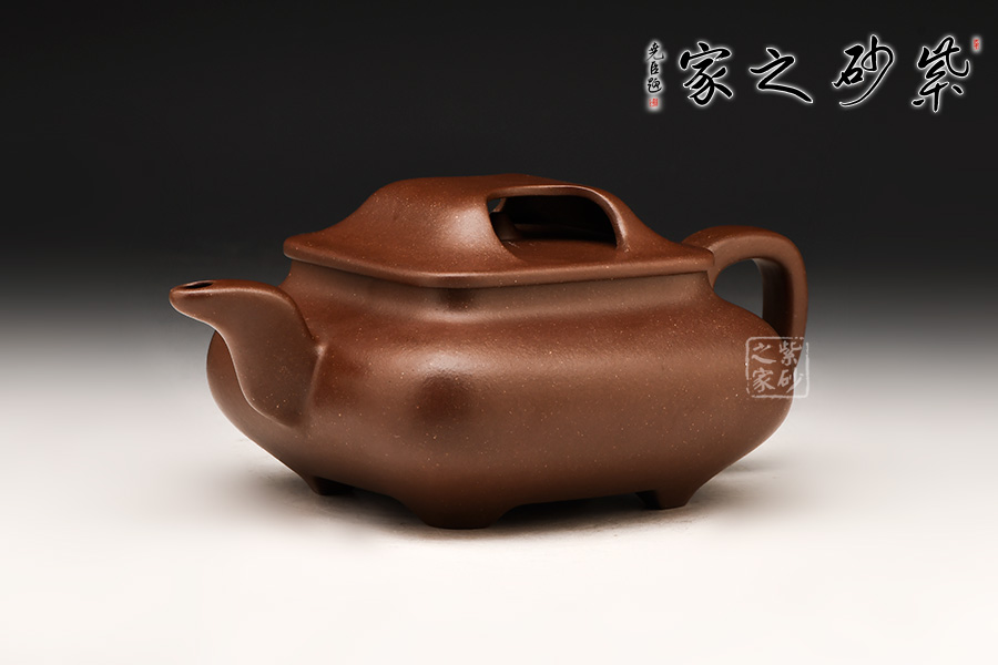 此件四方牛蓋壺氣勢剛健,線條轉折有致,明快而挺秀。底槽青發(fā)色沉穩(wěn),包漿油潤。流把呈四方造型,與壺身相呼應。底部作四足,配以牛鼻孔式鏤空結構的蓋鈕充滿陽剛之氣,生動與趣味完美結合。此壺技術工藝精巧絕倫,追古創(chuàng)新,風趣超然。