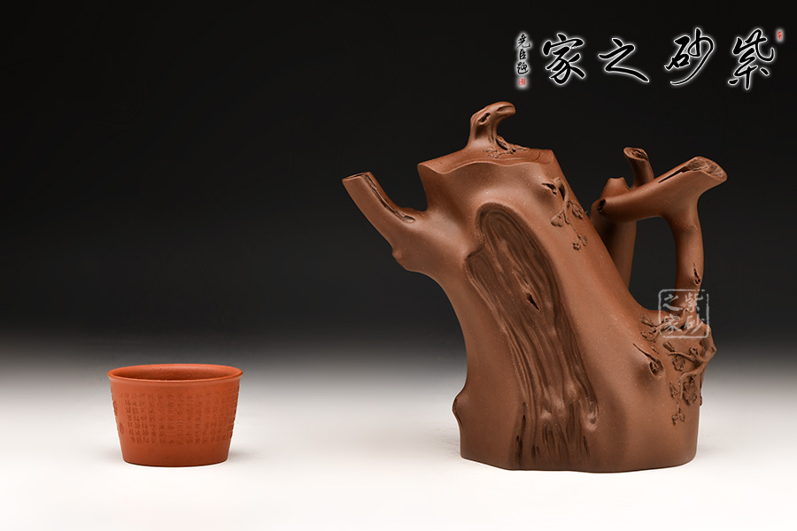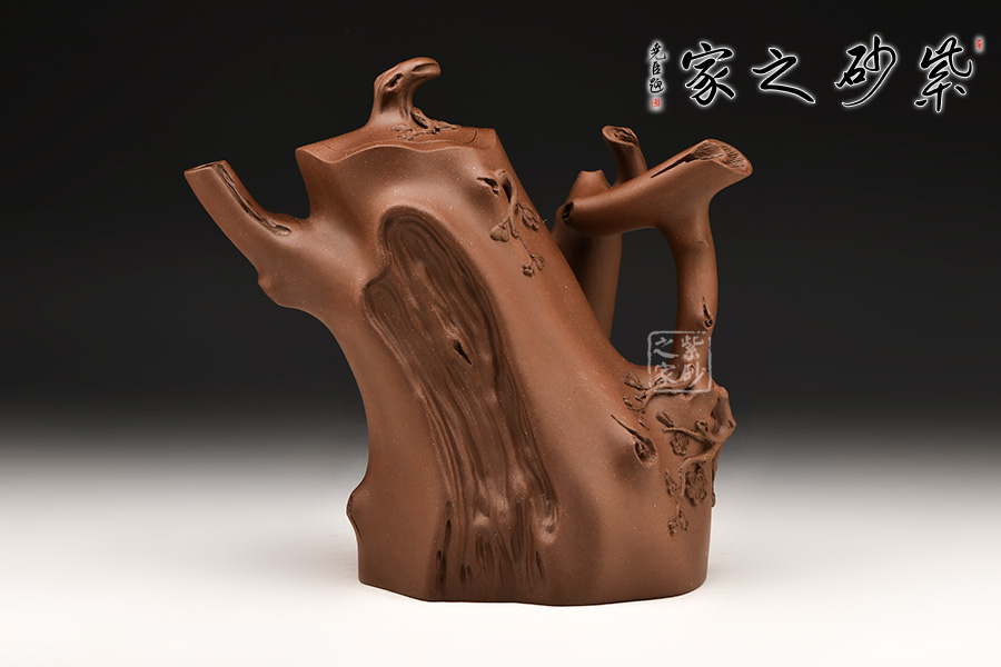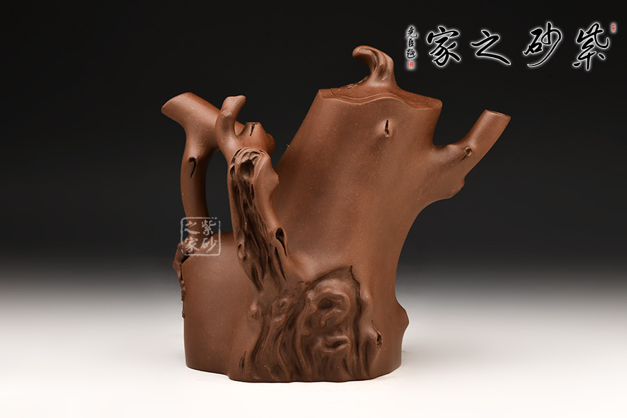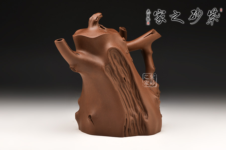 壺身成樹(shù)樁形,身上斑節(jié)老練逼真,整體制作到位,此壺做工精細(xì),氣度非凡,實(shí)用性觀(guān)賞性都很好,是把玩收藏之佳作!