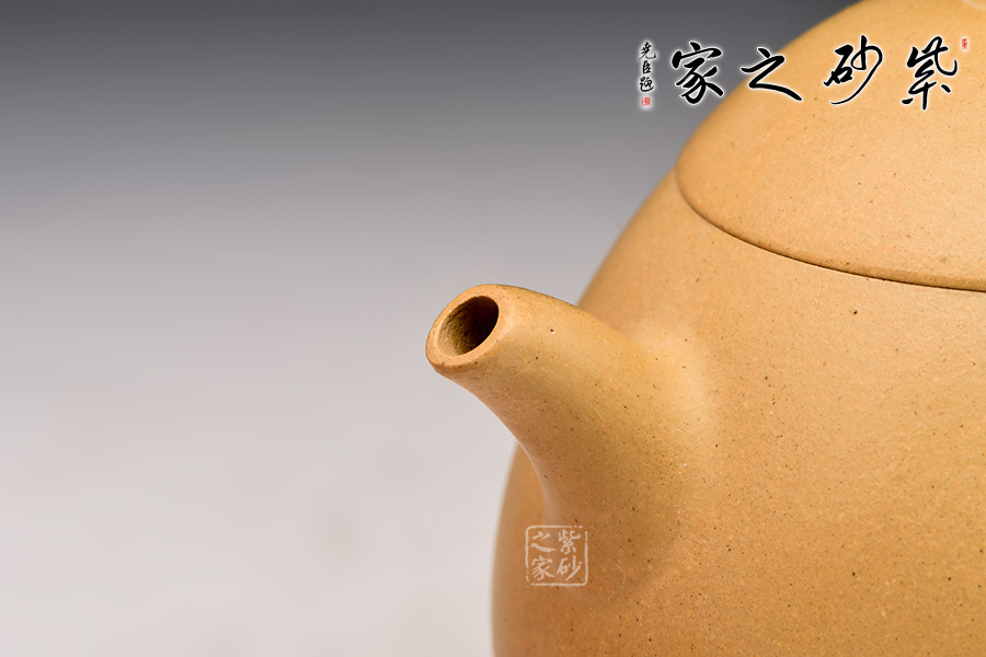 泥性:感甜嫩綿密,質(zhì)堅而溫潤,呈近田黃色調(diào),為江蘇宜興趙莊山系朱泥礦~黃石黃之共生礦,經(jīng)挑揀練製而成,因含鐵量只達6%左右,致陶之后呈“金田黃色”。