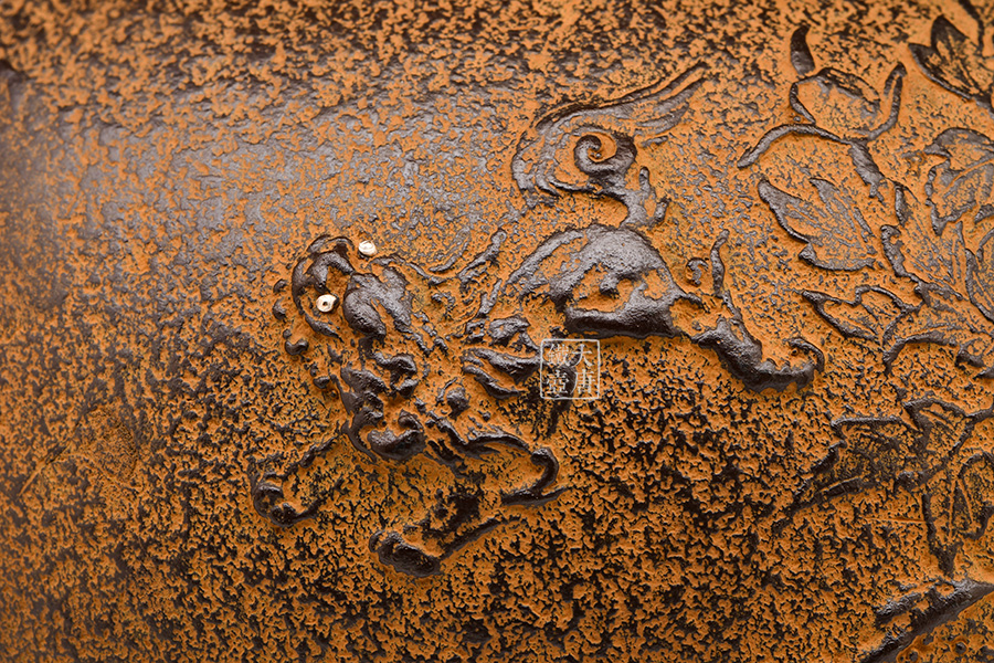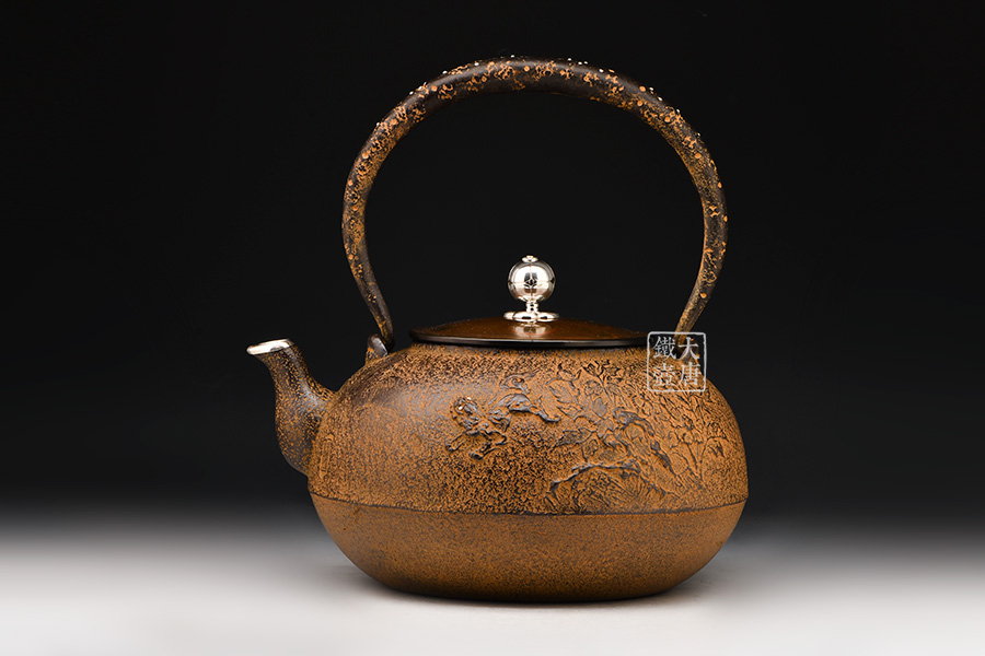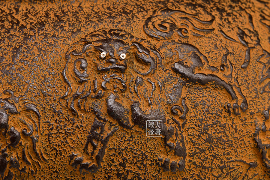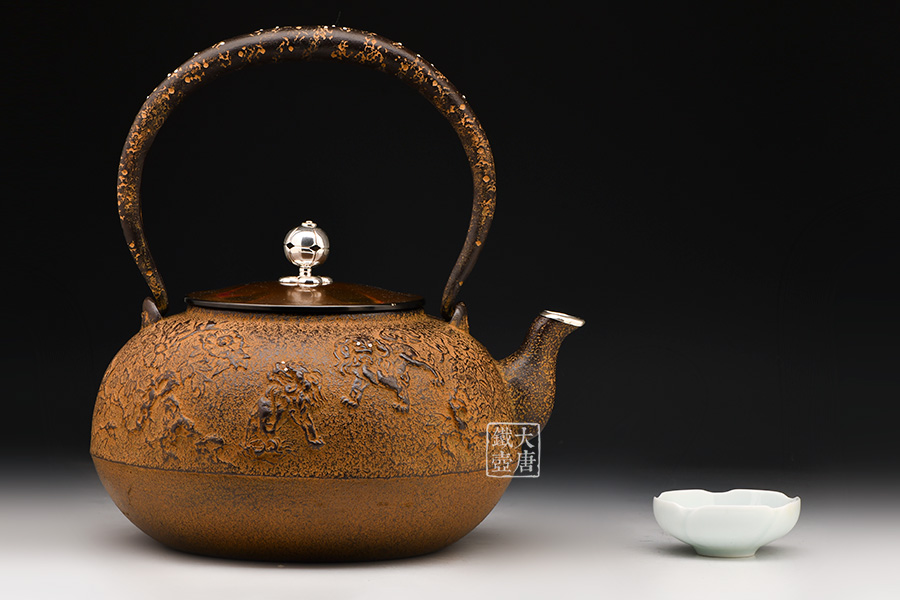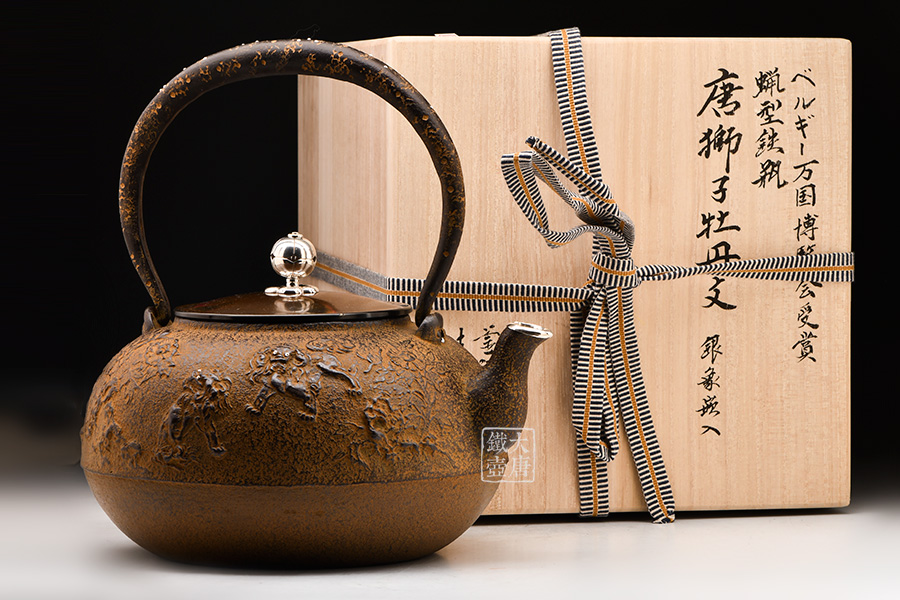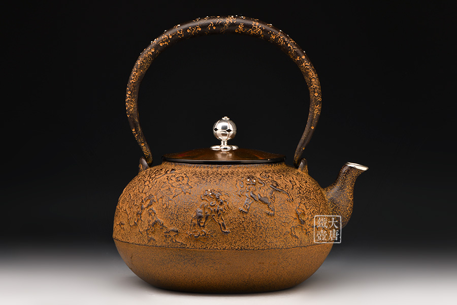 清光堂 唐獅子牡丹紋鑲銀鐵壺 [ 編號(hào):85850 ]