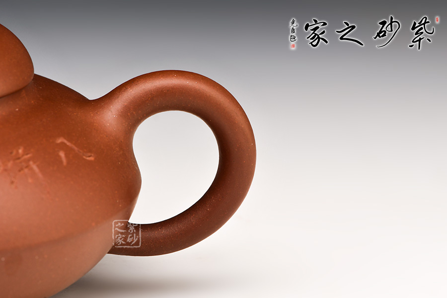 合歡壺,上下兩半對接而成,整體以弧線組合而成,簡潔、明快、素雅、精煉。壺型典雅精巧,線條圓融流暢,特別是圓鼓身、圓流口、圓壓蓋、圓珠紐、耳扳手,整體相融相和,協(xié)調(diào)通達(dá)。