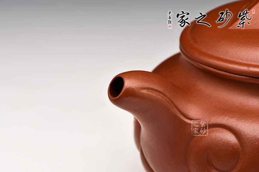 特點(diǎn):質(zhì)感綿密、緊實(shí)細(xì)緻,持之扎實(shí)沉重、紅潤(rùn)豔麗,泥中極品,無(wú)以倫比;泥胚含少許原礦顆粒,沖淋熱水后色變極大,呈紅中帶紫,養(yǎng)壺易現(xiàn)“包漿”之美。