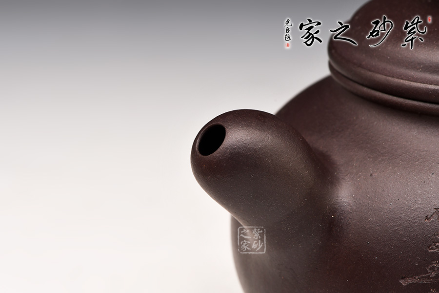 素美的光貨,細(xì)膩的材質(zhì),簡練的線條,塑造了一個好的形象。此壺壺身圓潤厚實,壓蓋設(shè)計嚴(yán)絲合縫,加一圓滑壺鈕,形似倒把與短小壺嘴與壺身過渡得非常自然、漂亮,使整個器形看起來簡潔明快,典雅大方!