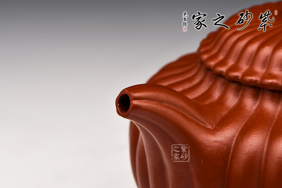 特點:質感綿密、緊實細緻,持之扎實沉重、紅潤豔麗,泥中極品,無以倫比;泥胚含少許原礦顆粒,沖淋熱水后色變極大,呈紅中帶紫,養(yǎng)壺易現“包漿”之美。