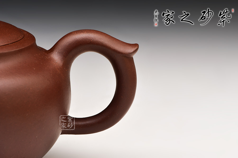 壺身飽滿圓潤(rùn),流與把同高,加以鳳元素簡(jiǎn)單飾之,鳳冠做壺鈕,十分典雅貴氣。整體處處銜接流暢自然,線條優(yōu)美利落。