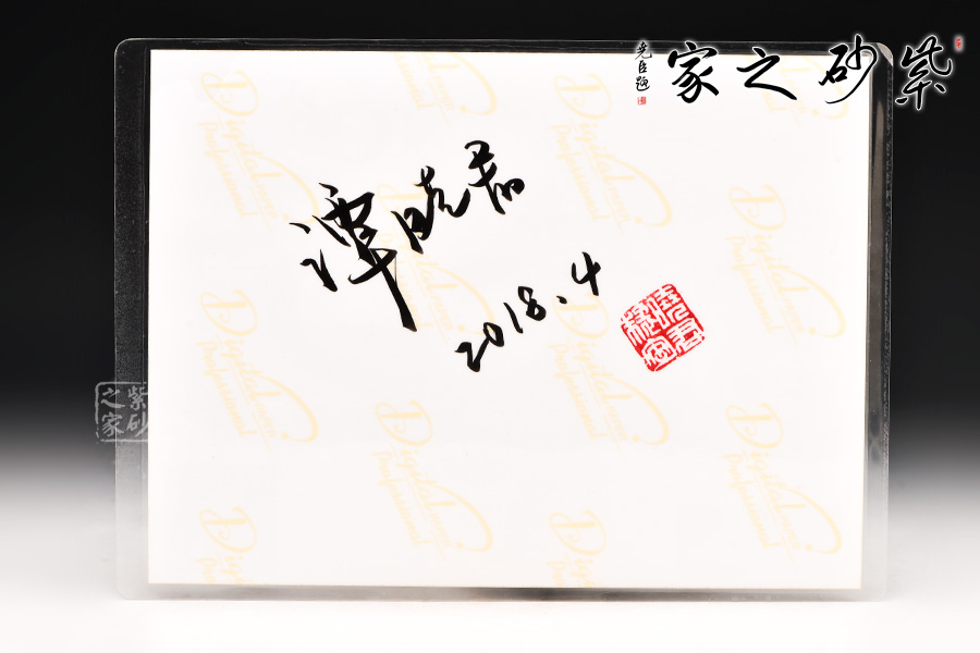 所制茗壺都由其父譚泉海大師設計監(jiān)制,提刀親攜,從而使壺藝與書畫交相輝映,渾然天成,達到了“壺隨字貴,字與壺傳”的藝術佳境。