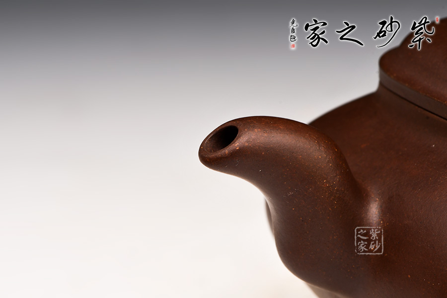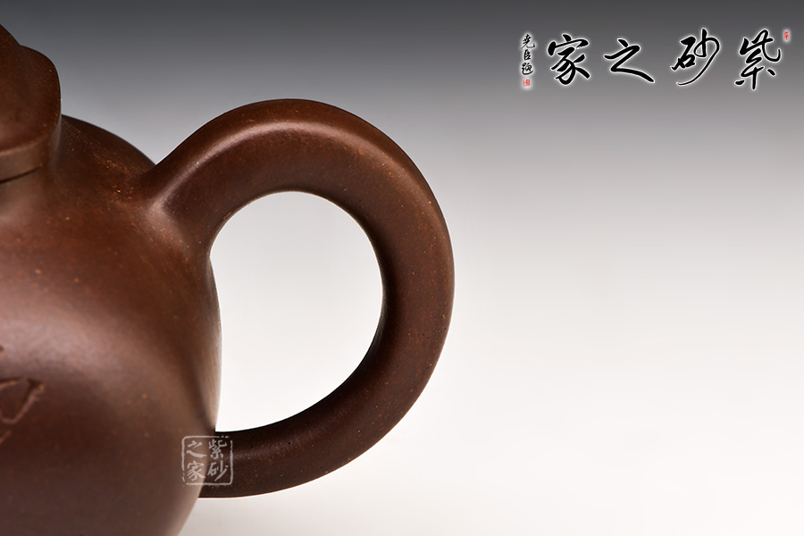 傳爐要滿、挺、穩(wěn)重,在壺肩張力得到充分表現(xiàn)的前提下,沿著壺腹下滑的線條要收,四足立位要正,底盤要穩(wěn)。傳爐的各個部分均存在方中帶圓的倒角,這和紫砂壺器的天地方圓的理念是相符合的。