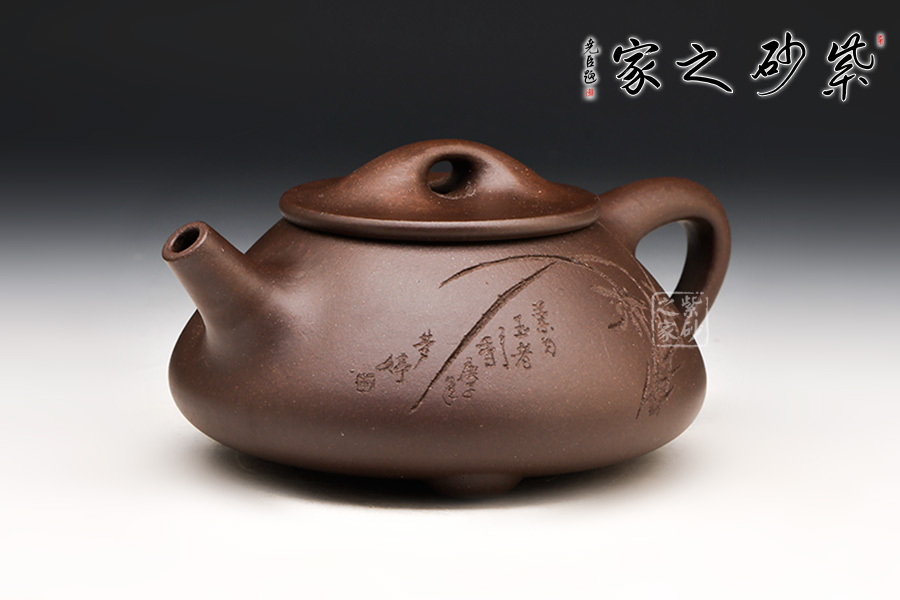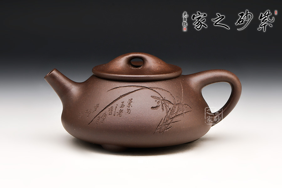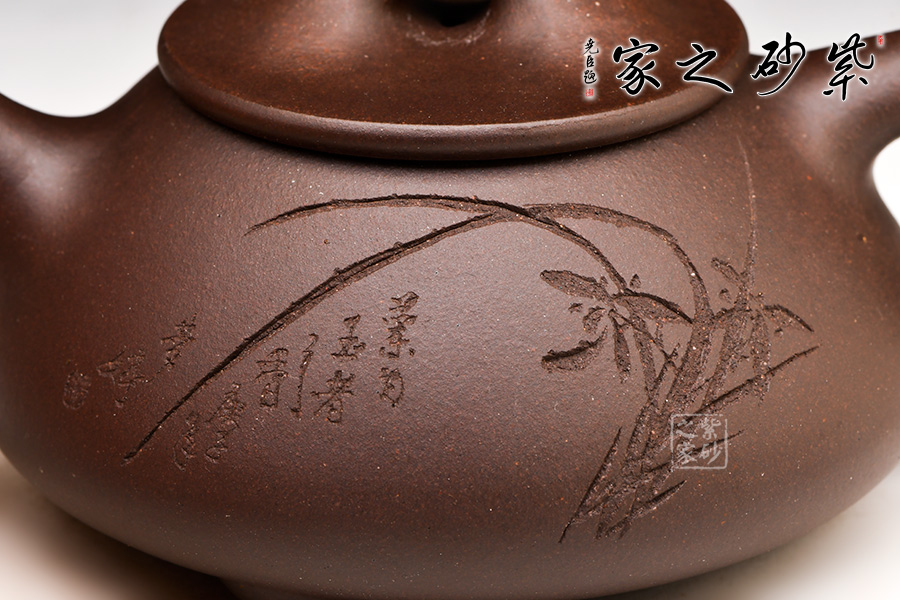 石瓢壺最大亮點在于作者自制自銘。栩栩如生的蘭花,秀氣典雅的小篆,不僅顯得砂壺古韻別致,觀賞價值極高,而且收藏價值也不錯。