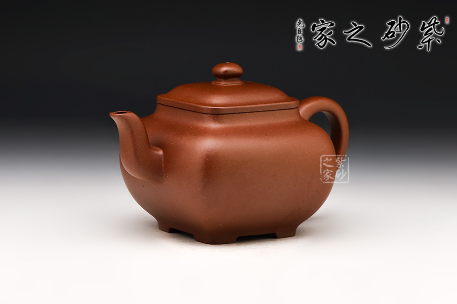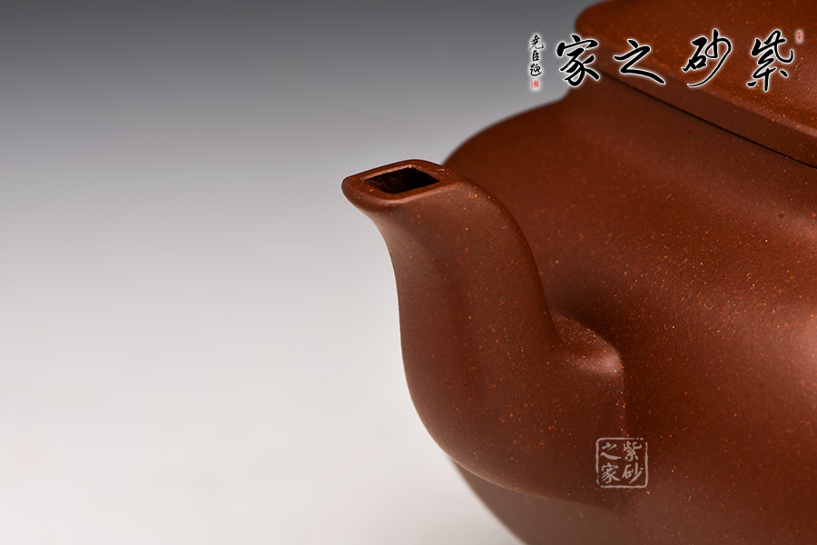作品方中亦圓,圓中亦方,壺身方正圓潤(rùn)挺拔,壺把、壺嘴流暢舒展,落落大方。高挑的壺蓋壺鈕,醒目而得體的高居其上,不卑不亢。