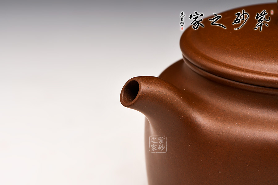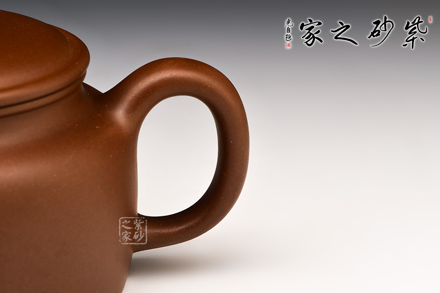 器形端莊穩(wěn)重,比例協(xié)調(diào),結(jié)構(gòu)嚴(yán)謹(jǐn),泥色質(zhì)樸瑩潤。壺身手感極佳,觸摸舒服,造型簡潔質(zhì)樸。