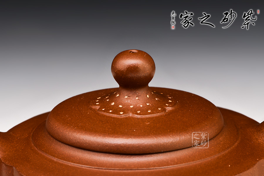 由上俯視,壺鈕寶珠似“鴻運當頭”,加之周邊描金點點,藝術感強。