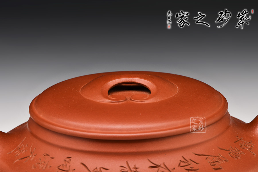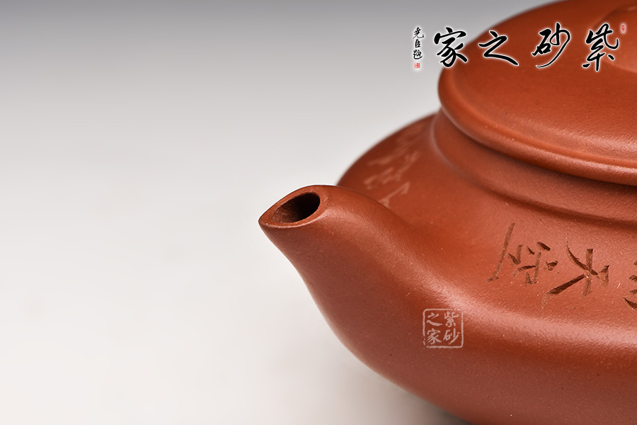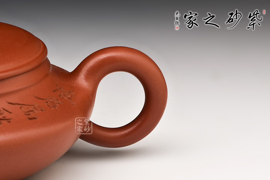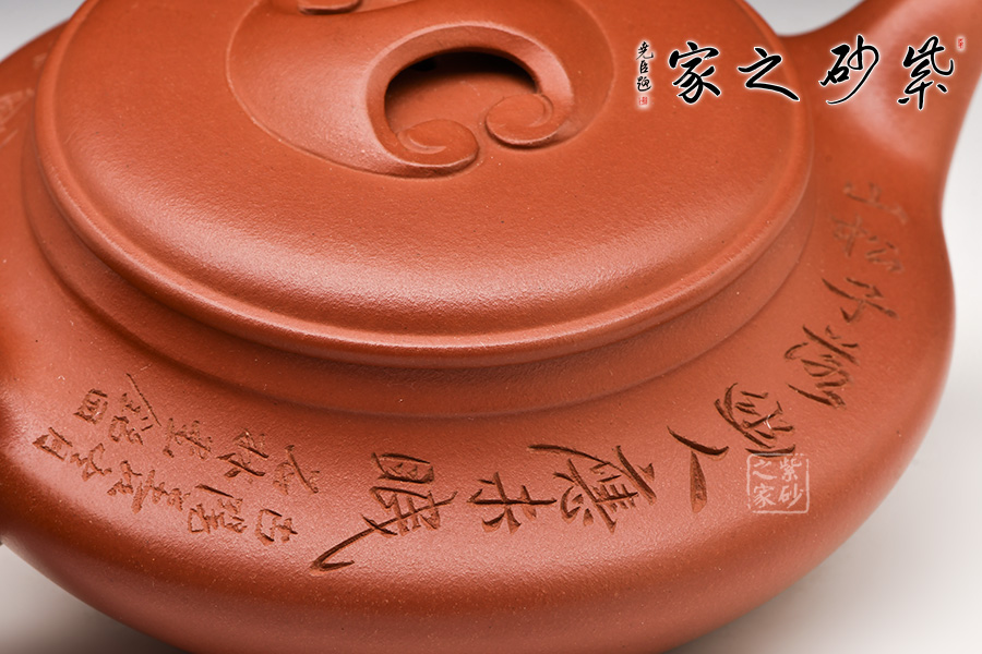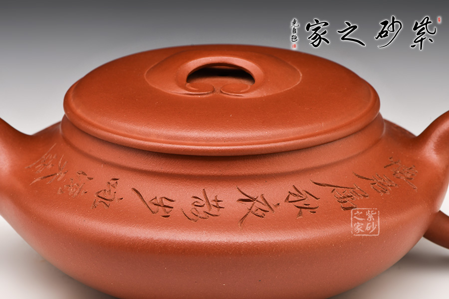 稱心如意壺虛扁型制,制作難度大,骨肉勻亭,穩(wěn)重大方。壺流胥出自然,壺把勻勢而起。壺鈕為如意形橋梁式,平緩舒展合體。整器精美絕倫,而且能夠在泥色的襯托下呈悠然、典雅之美。