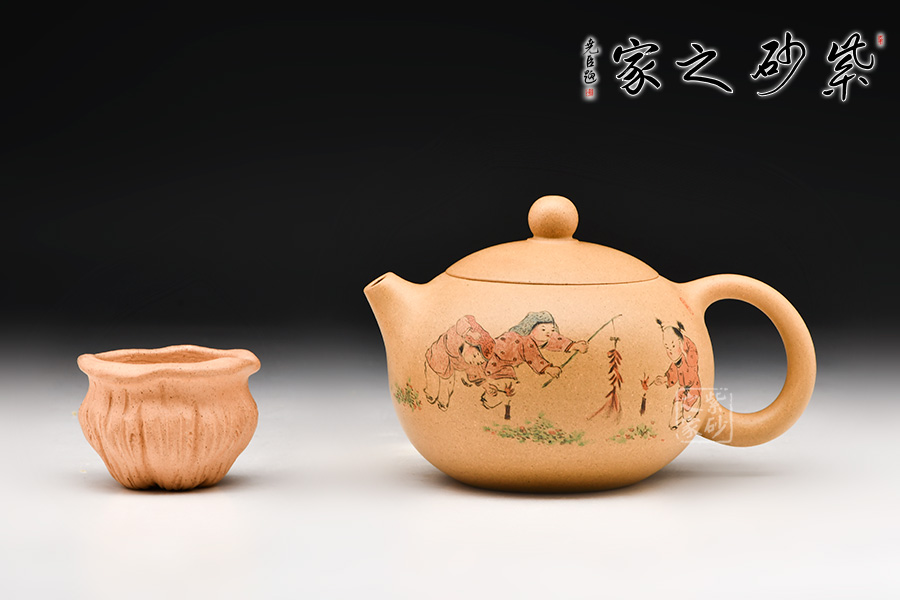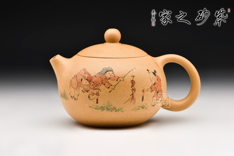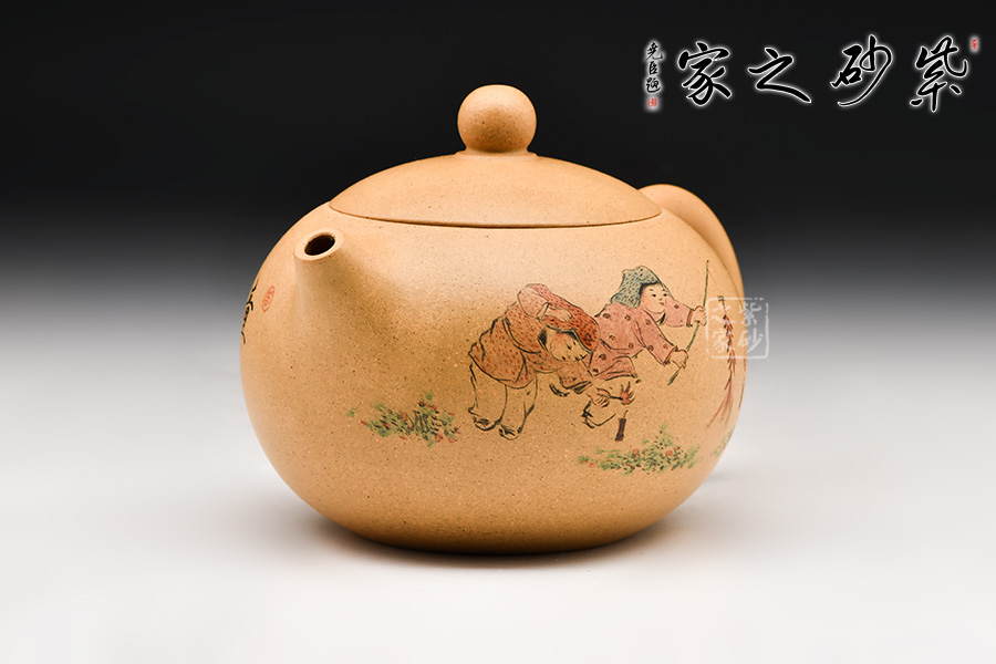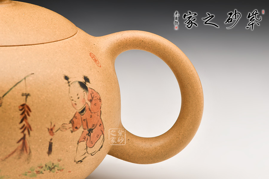 此作經(jīng)典西施型制,加之壺身之上裝飾的頑童嬉戲,“童趣天成”,歡樂(lè)放鞭炮的場(chǎng)景,觀之喜氣,心情愉悅。