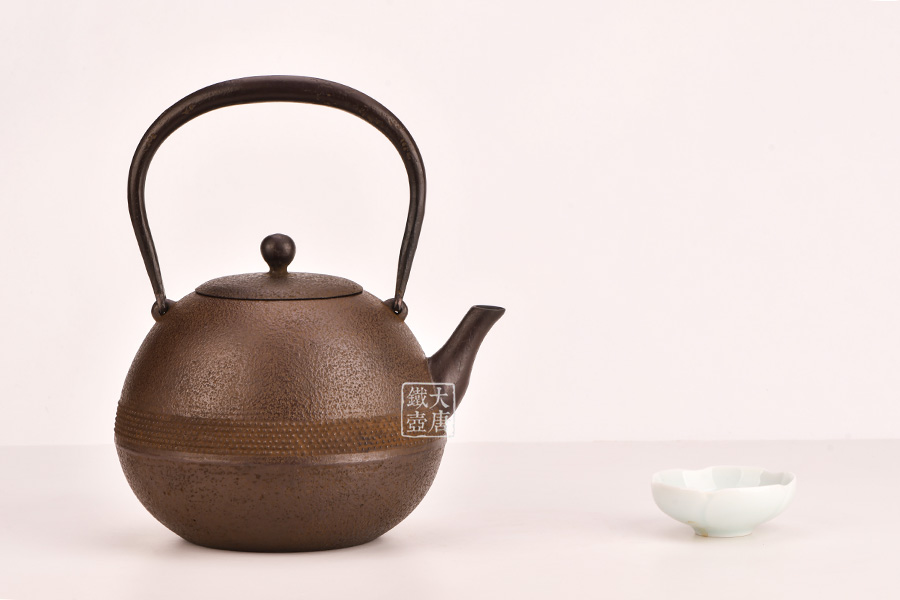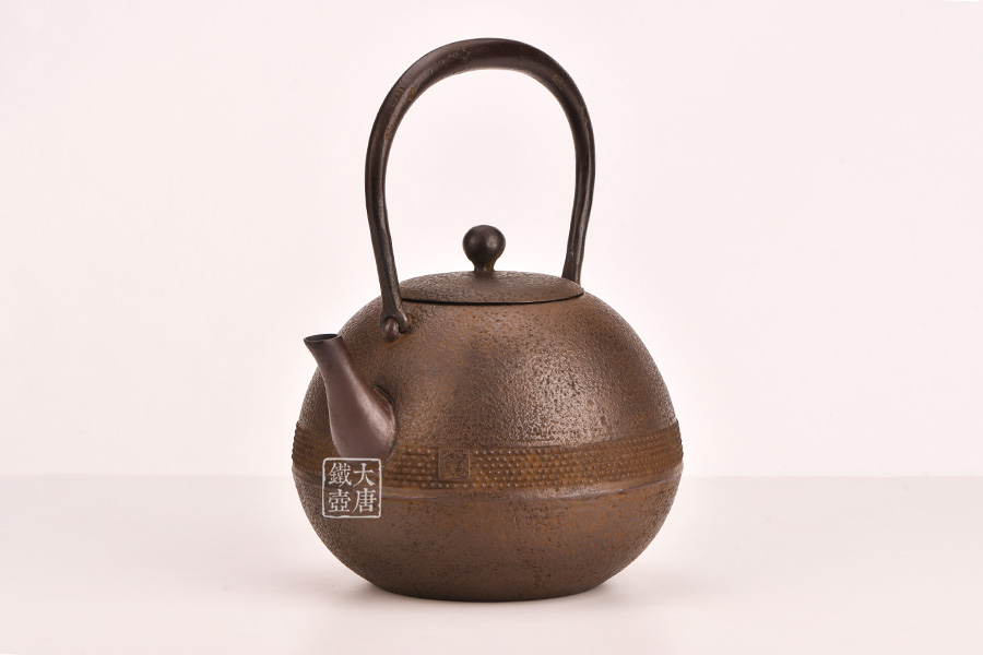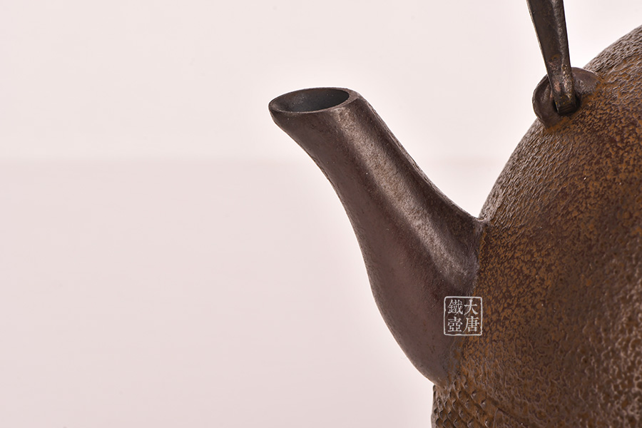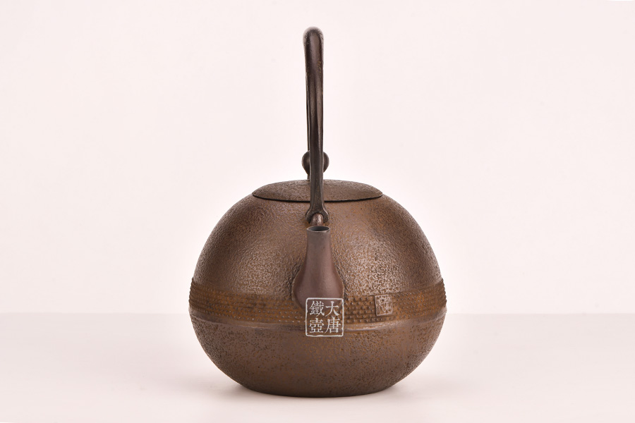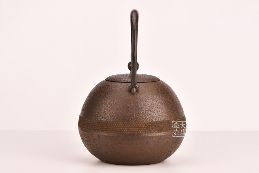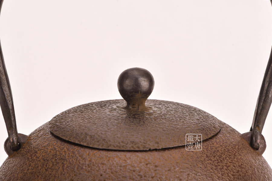 此款作品外觀輕巧靈動(dòng),霰紋裝飾不失穩(wěn)重。丸形是南部鐵器經(jīng)典造型,外觀線條不輸鈴木家的日丸造型和田山和康的蕾形。性價(jià)比極高,耐看、實(shí)用,是集賞玩用于一體的煮水利器。
