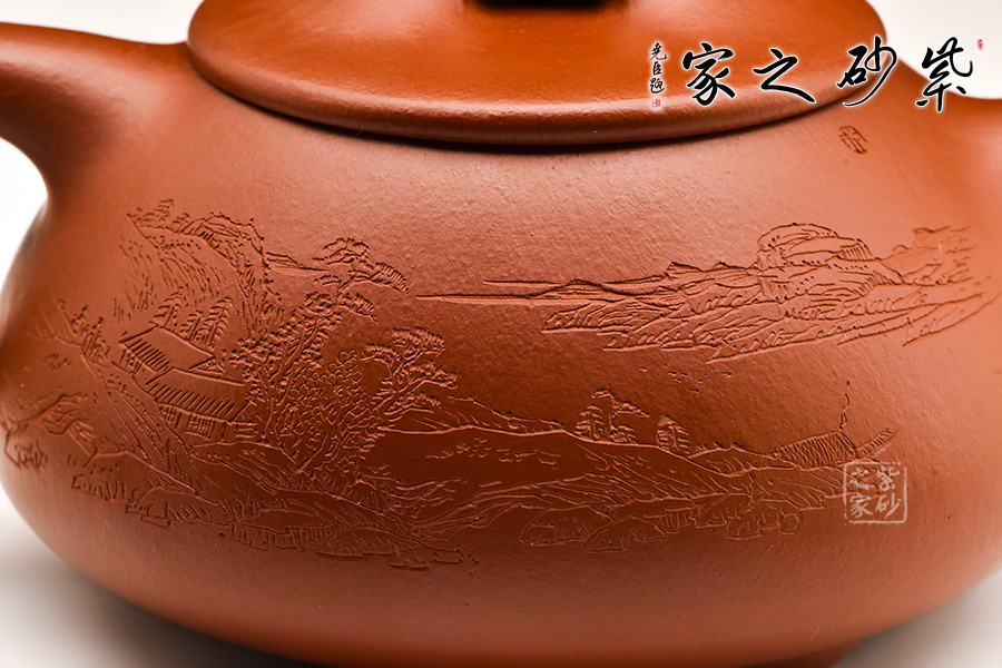 特點(diǎn):質(zhì)感綿密、緊實(shí)細(xì)緻,持之扎實(shí)沉重、紅潤(rùn)豔麗,泥中極品,無(wú)以倫比;泥胚含少許原礦顆粒,沖淋熱水后色變極大,呈紅中帶紫,養(yǎng)壺易現(xiàn)“包漿”之美。