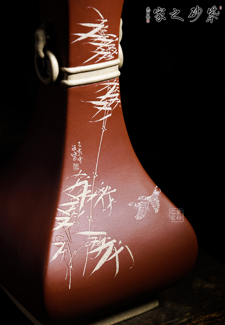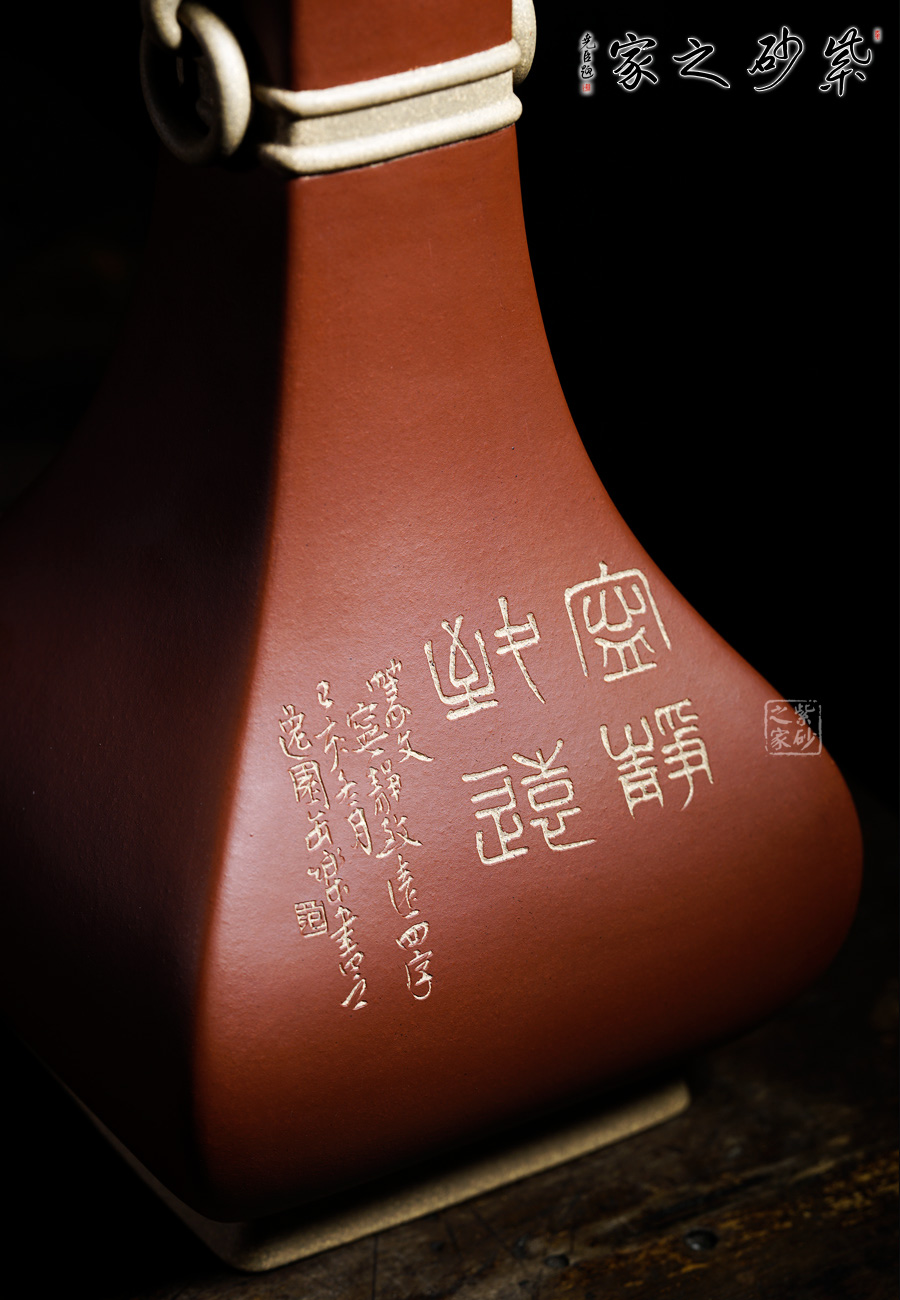 此款“蒜頭瓶 ”是老師自制自銘的,段泥全手工打造。長頸、削肩、園腹、圈足、瓶口似蒜頭而得名“蒜頭瓶”。瓶身雙面刻繪,細節(jié)刻畫細致,筆鋒強勁有力,是一款不可多得的擺件。