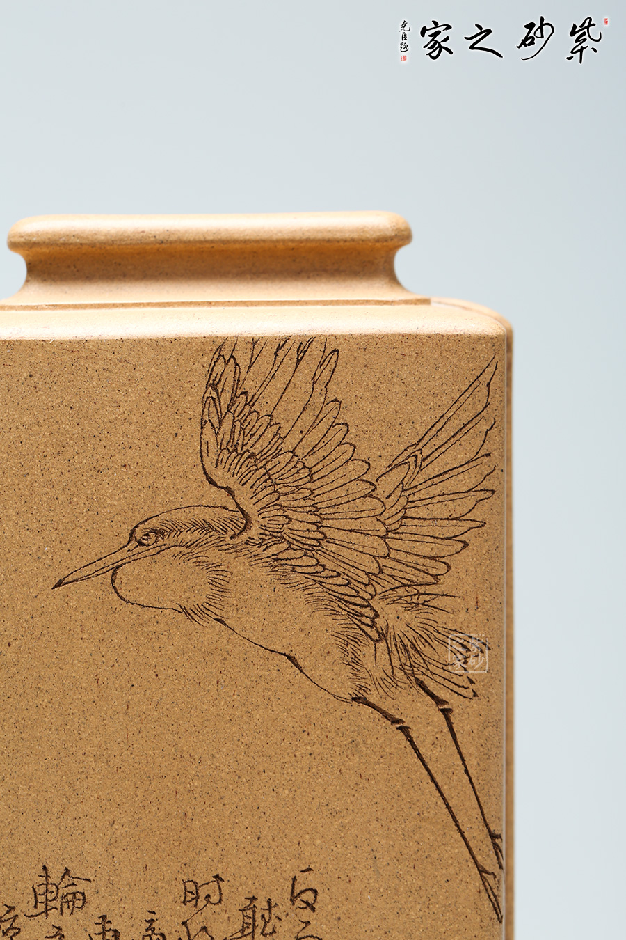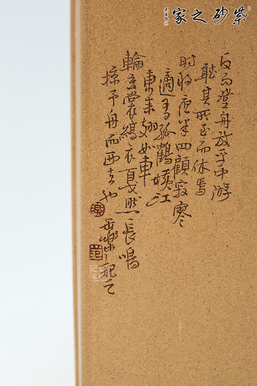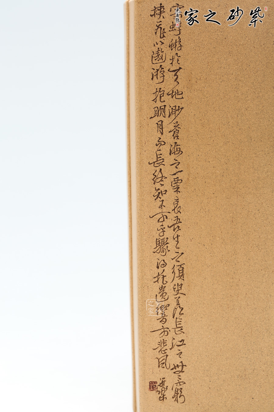 此款“方山玉帶瓶 ”是老師自制自銘的,段泥全手工打造,色澤古樸,端莊大氣。瓶身四方,線條流暢,不帶過(guò)多的曲線,配上瓶面寫意的詩(shī)詞畫像,增加了它的高雅趣事,藝術(shù)氣息十足,既實(shí)用又美觀,喜歡的藏友不要錯(cuò)過(guò)。