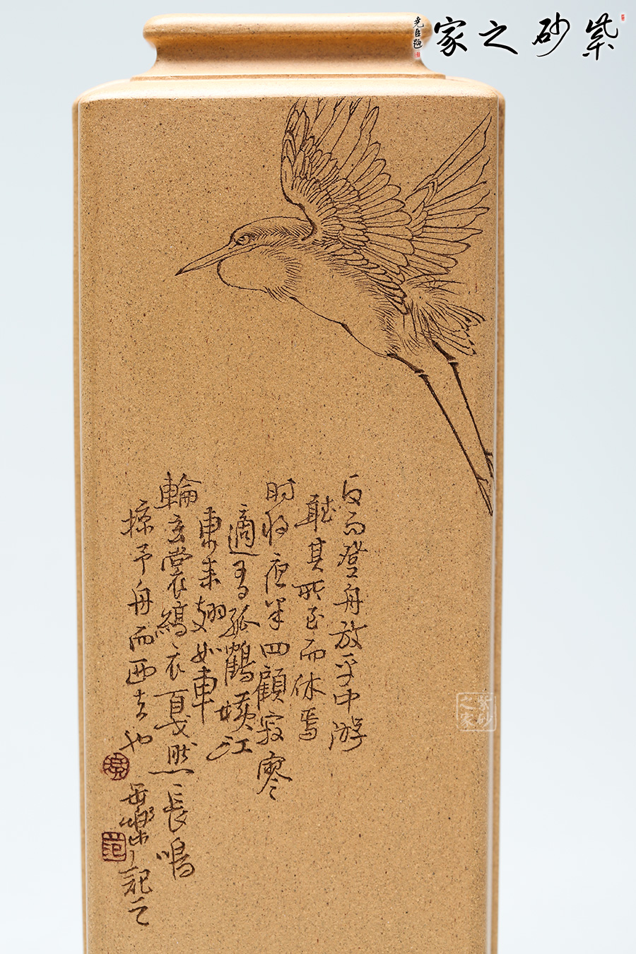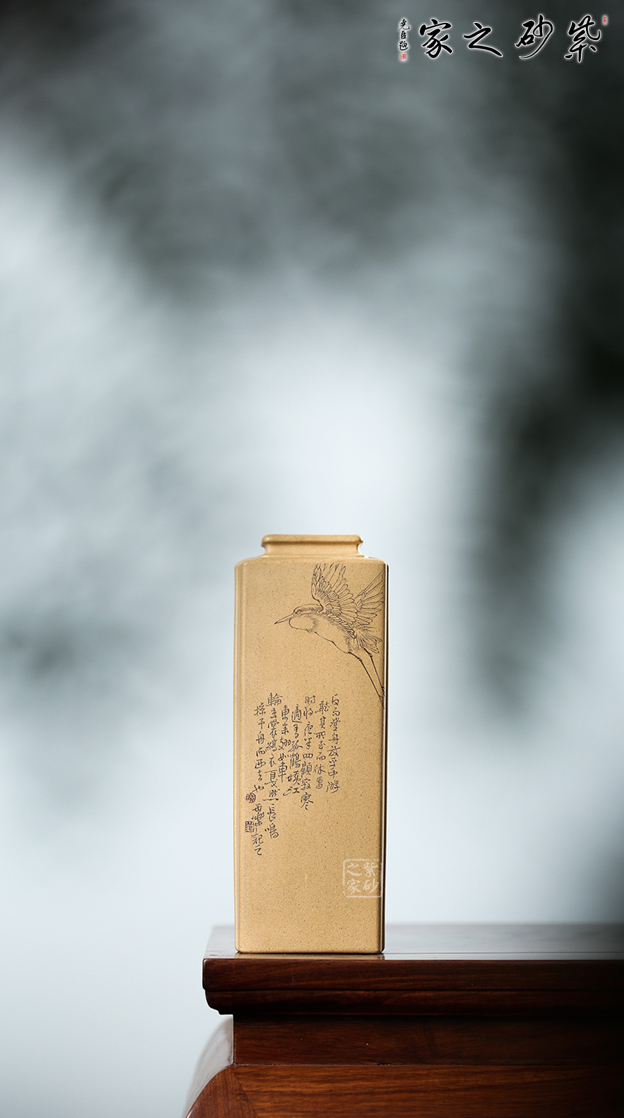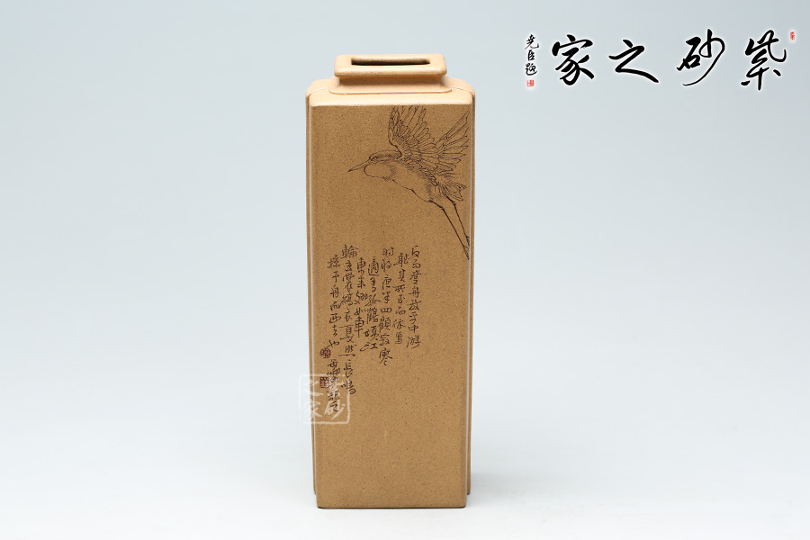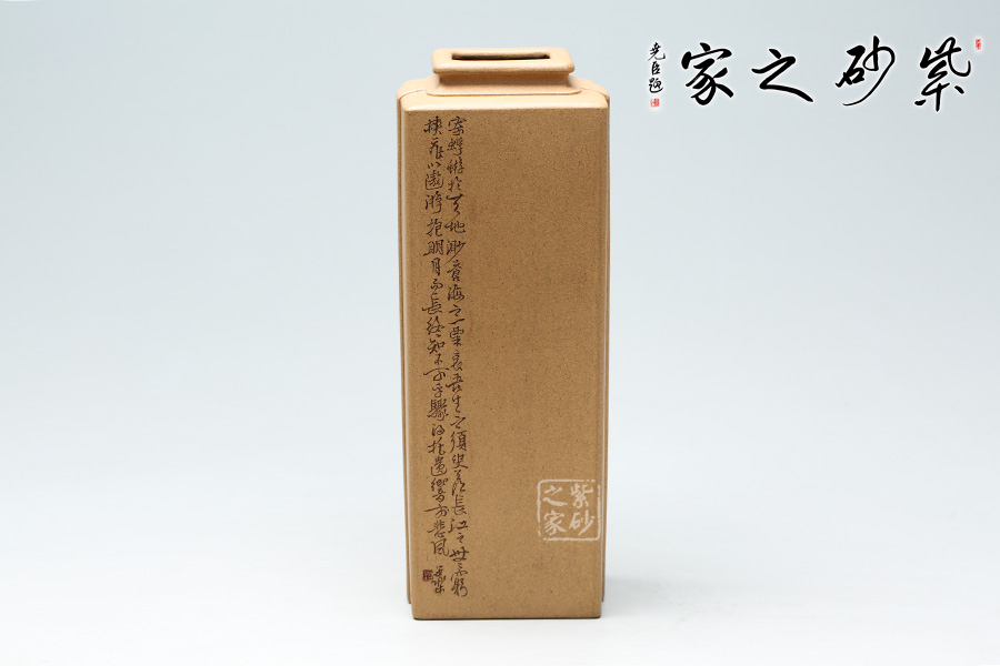 此款“方山玉帶瓶 ”是老師自制自銘的,段泥全手工打造,色澤古樸,端莊大氣。瓶身四方,線條流暢,不帶過(guò)多的曲線,配上瓶面寫意的詩(shī)詞畫像,增加了它的高雅趣事,藝術(shù)氣息十足,既實(shí)用又美觀,喜歡的藏友不要錯(cuò)過(guò)。