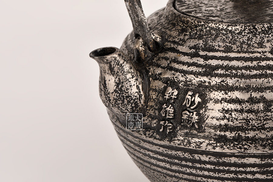 荒井工房的鐵瓶除了在鑄造工藝上有嚴格的規(guī)范和體系,在鐵瓶裝飾技術(shù)上也頗有建樹。除了傳統(tǒng)的印刻技術(shù)外,荒井工房還掌握了非常出色的金銀鑲嵌技藝,尤其以大片的鏨刻銀片最為出眾,這在山形當?shù)靥每谥歇殬湟粠谩?/p>