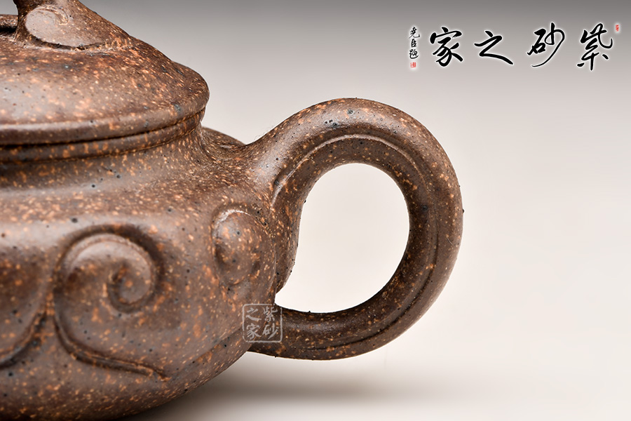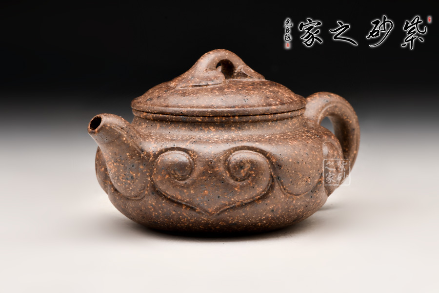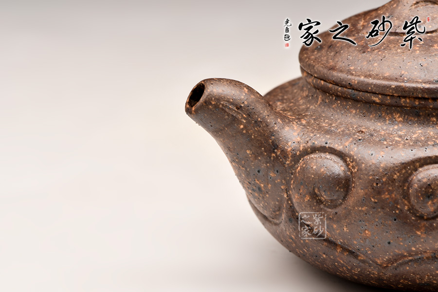 中國紫砂礦料中極為稀少的一種共融礦料,指的就是自然的紅泥、綠泥、降坡泥、段泥、 紫泥等等,甚至更多不同品種的礦料蘊藏在同層面結(jié)構(gòu)的共融礦。通過制作茶壺,把紫砂原礦的砂色美、厚重美、古樸美表現(xiàn)的淋漓盡致,所呈現(xiàn)的砂色效果,燦爛奇幻。