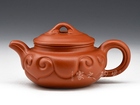 小仿古如意,盈手可握,精巧可愛。在傳統(tǒng)仿古扁壺造型上加飾如意筋紋,身、蓋、頸、腹、鈕,錯落有致,骨肉亭勻。壺的口沿與壺蓋截成一條圓線,口蓋各占一半,蓋子蓋上即合成飽滿的圓線,其對作者的考量可想而知。壺流胥出自然,壺把勻勢而起,且與壺身如意貫氣。壺鈕為如意形橋梁式,平緩舒展合體,整器精美絕倫,呈悠然、典雅之美。