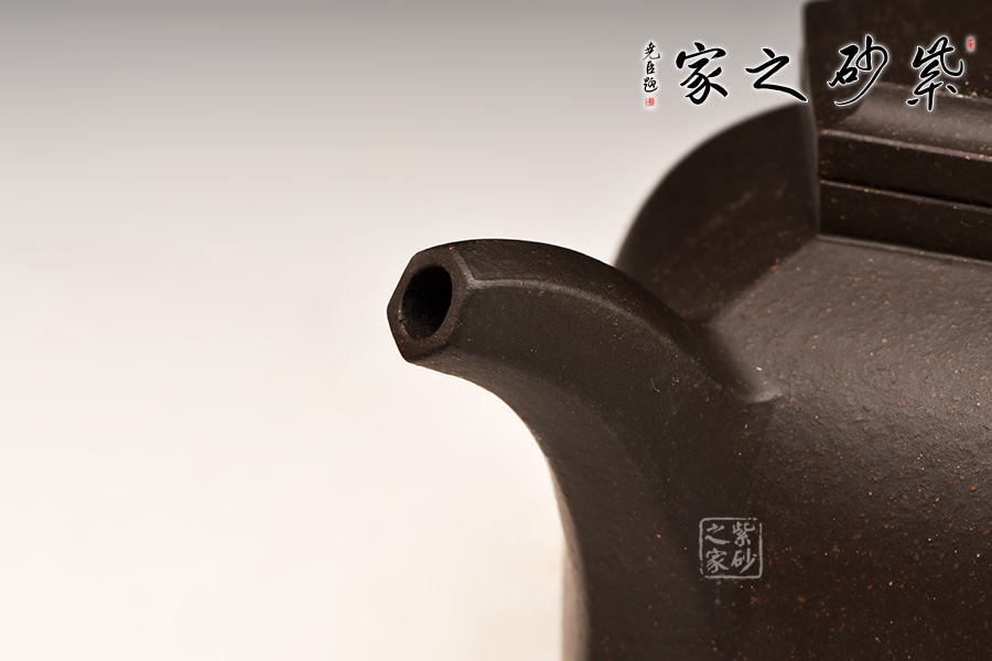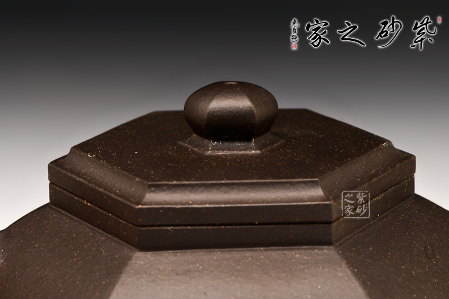 作品珍稀泥料精做,靜穆古雅,質(zhì)感甚佳。壺身以六片梯形泥片結(jié)構(gòu)而成,重心不移,結(jié)構(gòu)周正,壺頸與蓋緣連結(jié)成一立面,壺鈕作六方扁珠形,使全器展現(xiàn)出沉穩(wěn)凝練的不凡氣度。