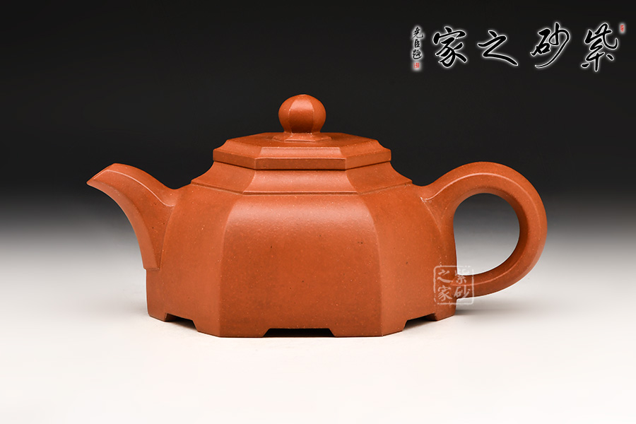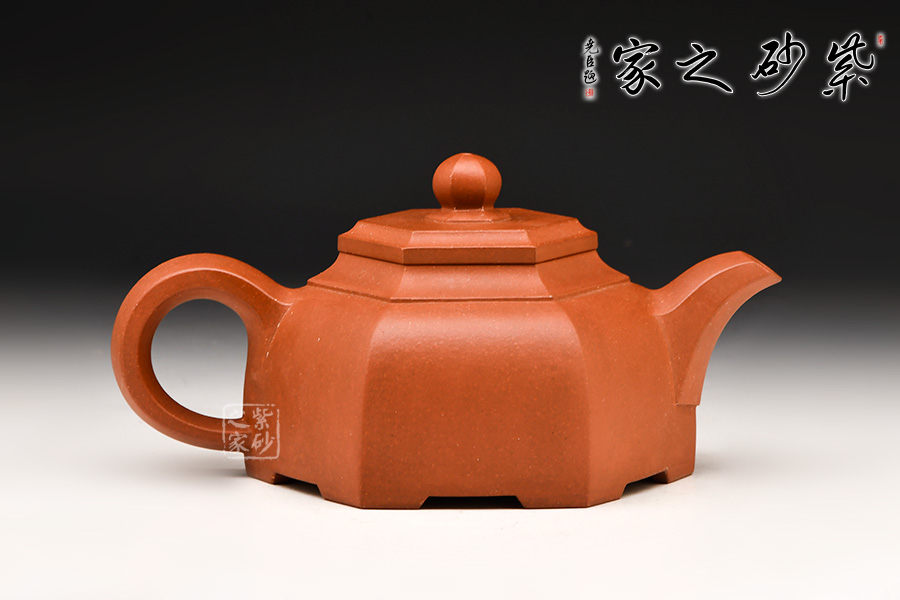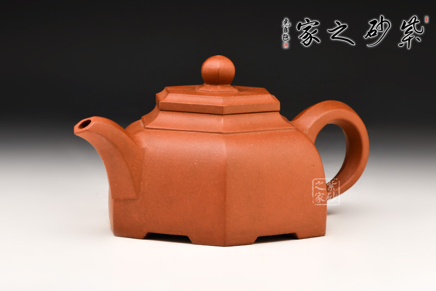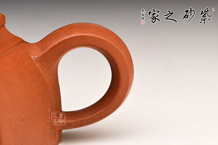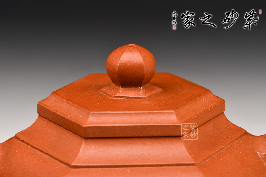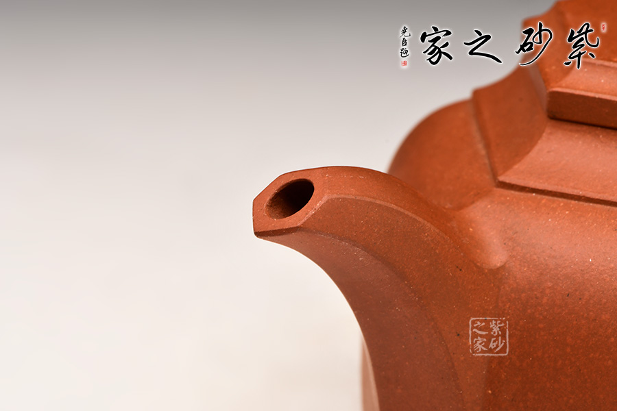 此壺身乃六片鑲接而成,壺蓋也為六邊,流、把亦化圓為方,各部銜接自然光滑。全壺均布以六條曲線,依壺造勢(shì),壺體線條飽滿,向外賁張,鈕、蓋、把、流全部線條均衡,張弛有度,開(kāi)闔得宜。