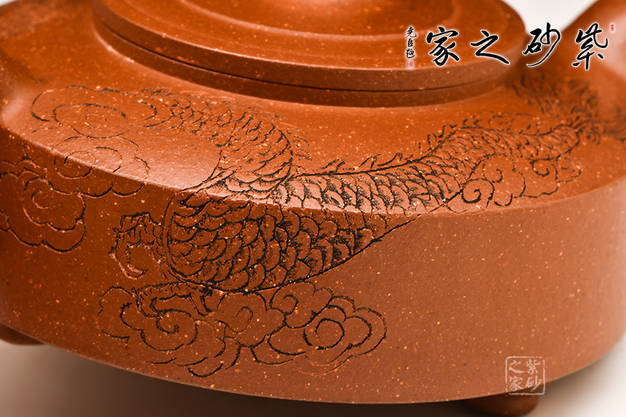 泥性:原礦因含緞泥、紅泥、紫泥等諸多共生礦,陶之后,于深沉之“橙紅色”底上,滿佈五彩斑斕的粗細(xì)、深淺之紅、黃星斑點(diǎn)。