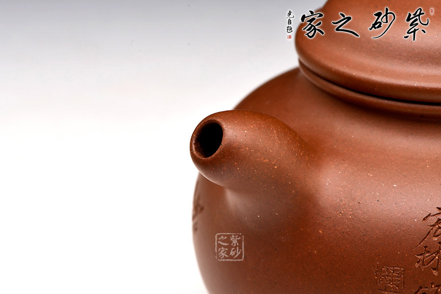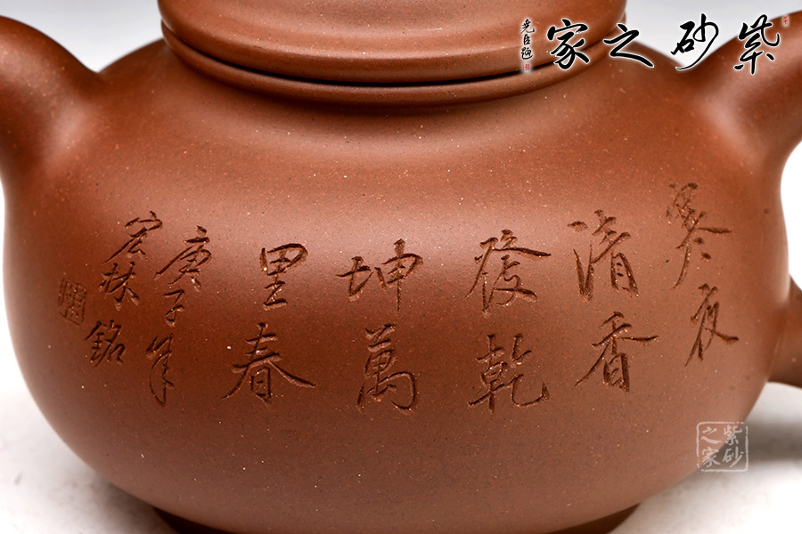 研究員級高級工藝美術(shù)師王福君老師所制的清泉壺色澤醇和深邃,溫潤討喜。經(jīng)由實力陶刻師陳宏林雙面繪刻,更具收藏價值。