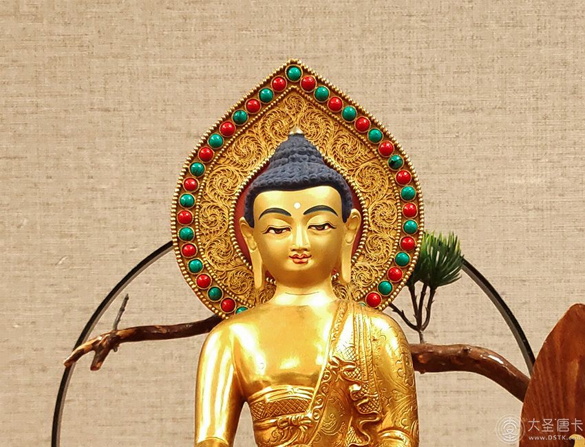 產地:尼泊爾佛像 工藝:鎏金 創作年份:2020 題材:釋迦牟尼 繪制時間:0日 尺寸:*24cm 重量:0 g 材質:紫銅 使用場地: