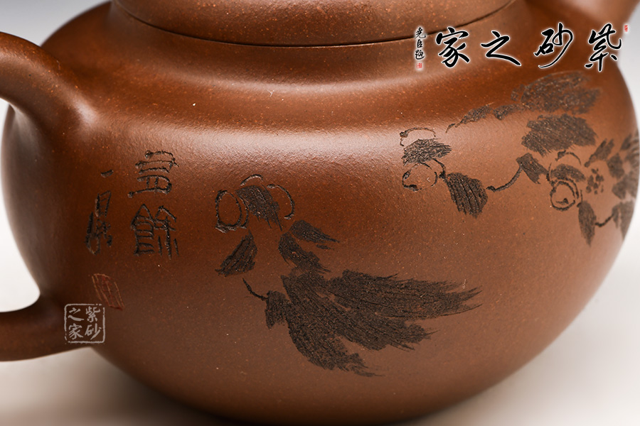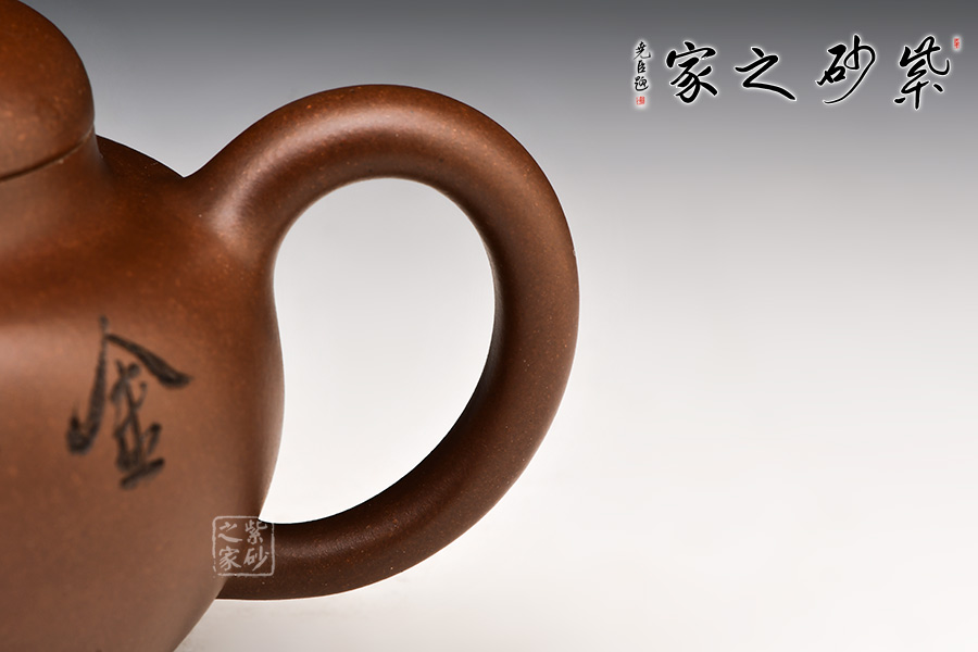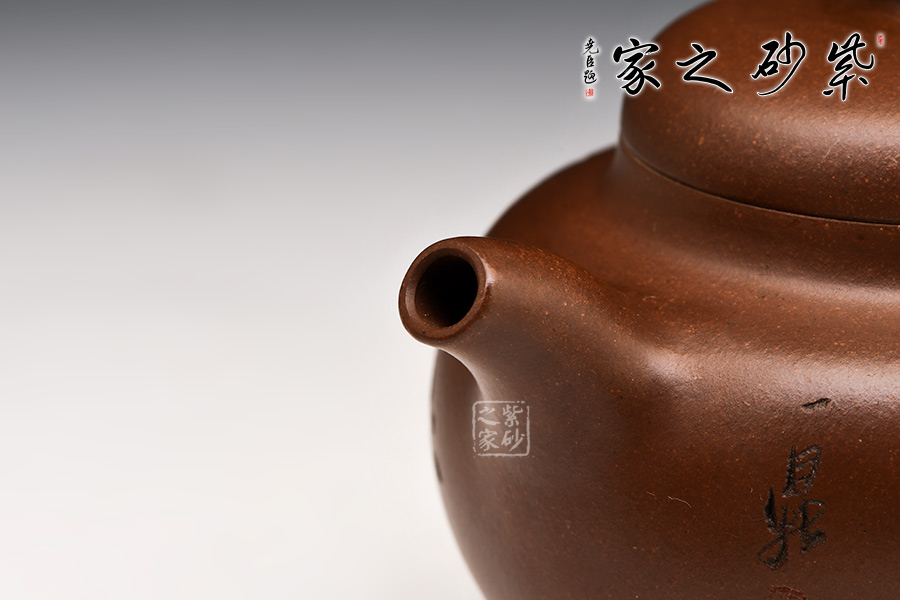 選用九十年代紫泥制作,色澤豐潤深邃,造型優(yōu)美,線條流暢,壺把、壺鈕與壺嘴用工細(xì)膩,處理自然。壺身刻“金玉滿堂”,對應(yīng)反面金魚刻繪,不媚不俗、古樸雅致,其獨(dú)特藝術(shù)風(fēng)格,深厚壺友的喜愛!