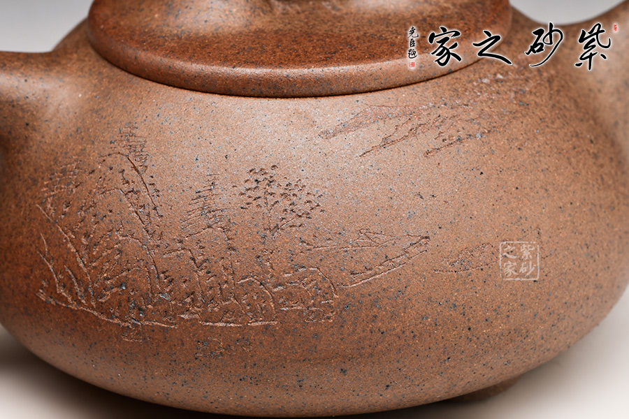 通過窯變使色彩發(fā)生天然的變化,讓原本可以重復(fù)制作的紫砂壺工藝,達(dá)到不可復(fù)制的效果。器形去繁就簡,典雅大氣,壺身刻銘逸文佳句,紫砂壺藝術(shù)與傳統(tǒng)文化的融合就從這里開始。