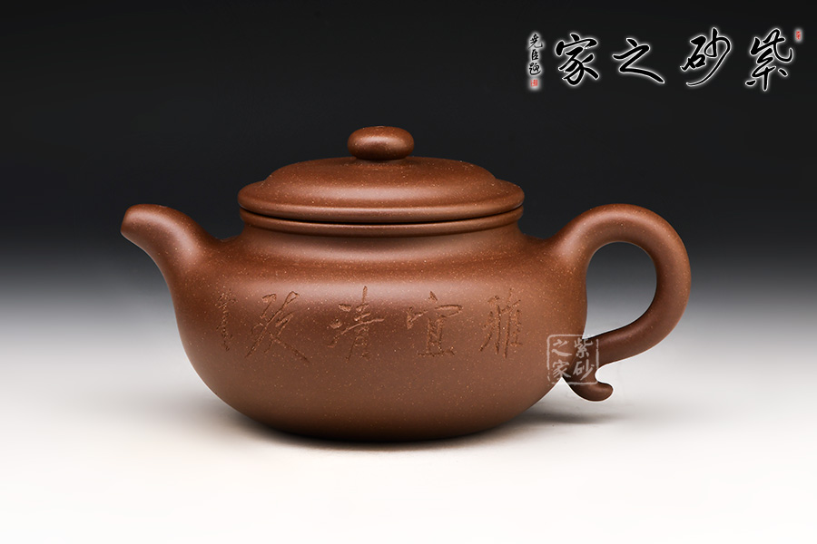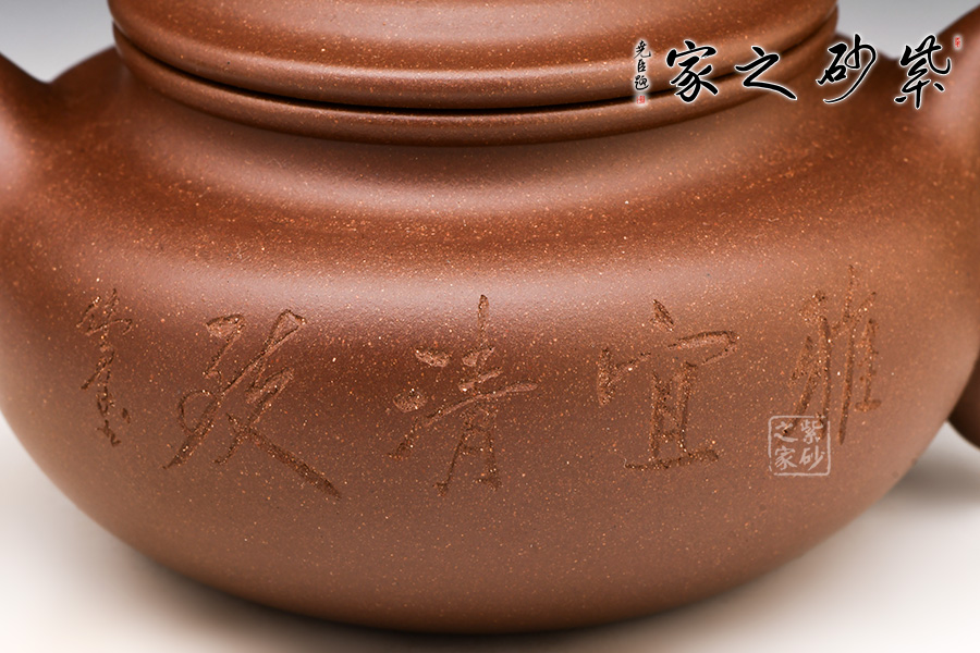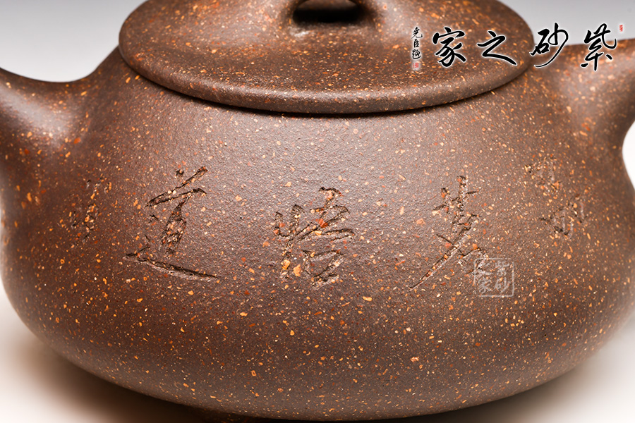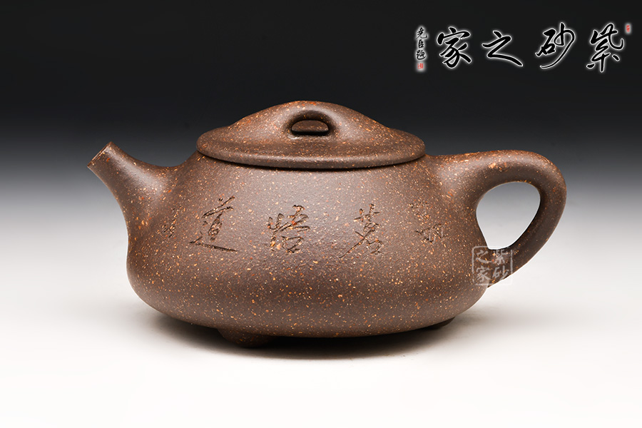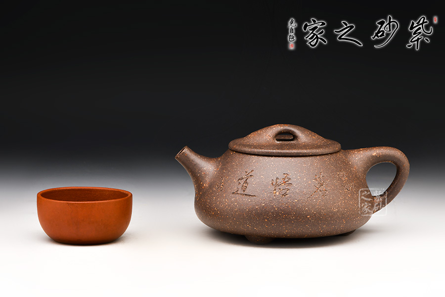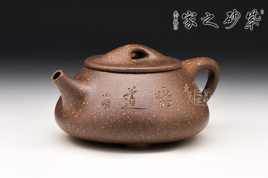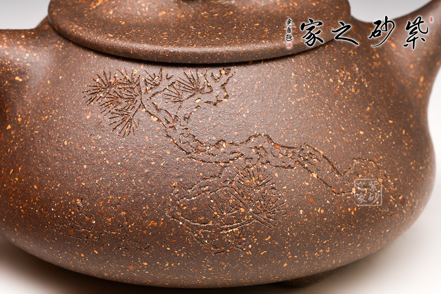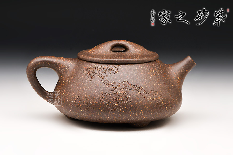 致經(jīng)典之《石瓢壺》:由喻小芳、史小明、毛子健合作。壺體由毛子健繪松樹,史小明題“品茗悟道”。可謂:暗含幽客思,貴在敦實間,此生方得閑!